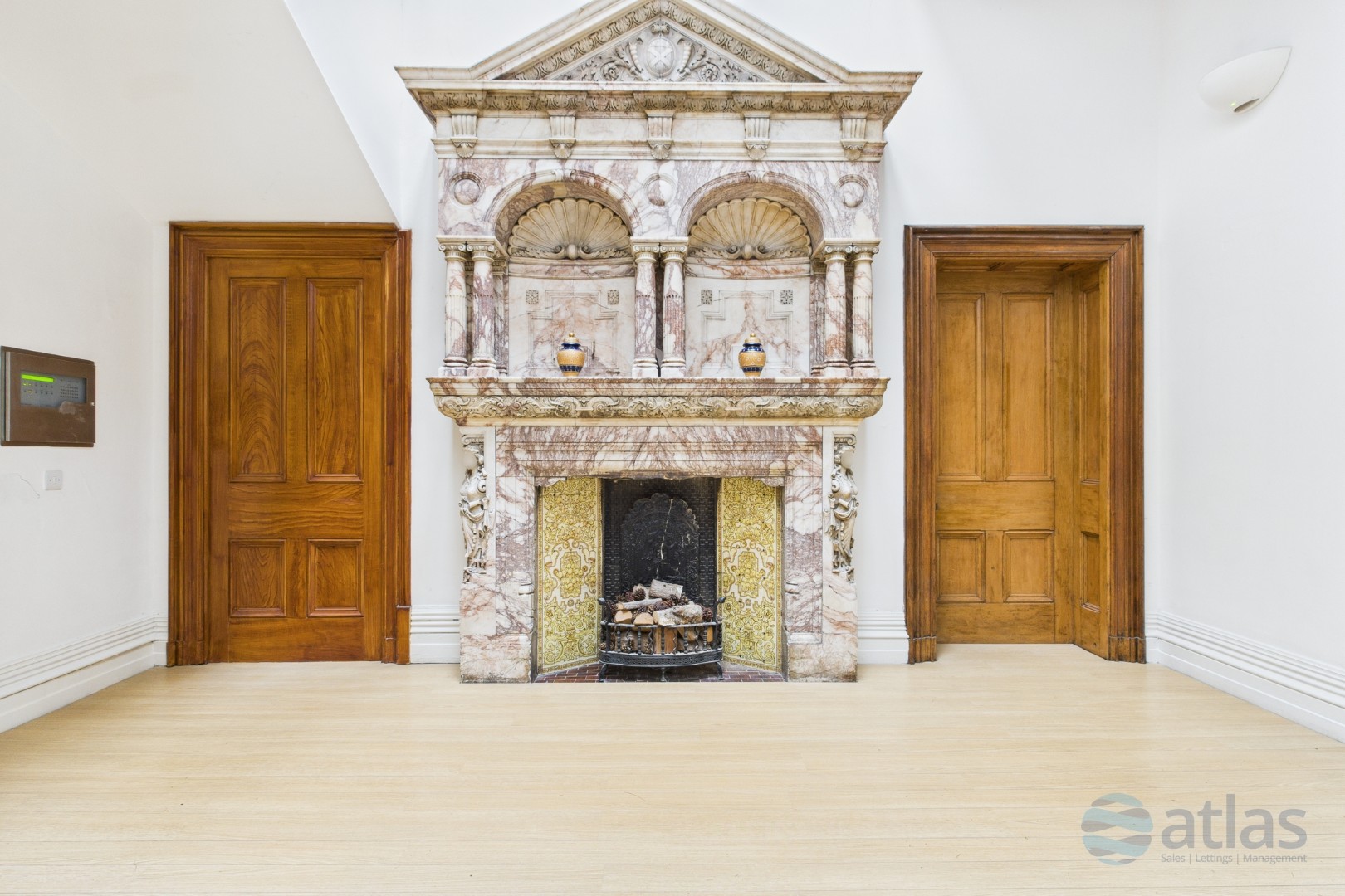 At the heart of the home lies the generously sized kitchen/diner, perfect for hosting dinner parties or family gatherings. From here, you can enjoy stunning views over the well-maintained communal gardens, providing a peaceful and serene backdrop to everyday life. The reception room is equally impressive, featuring a striking period fireplace and a bright, airy atmosphere that makes it ideal for relaxing or entertaining.