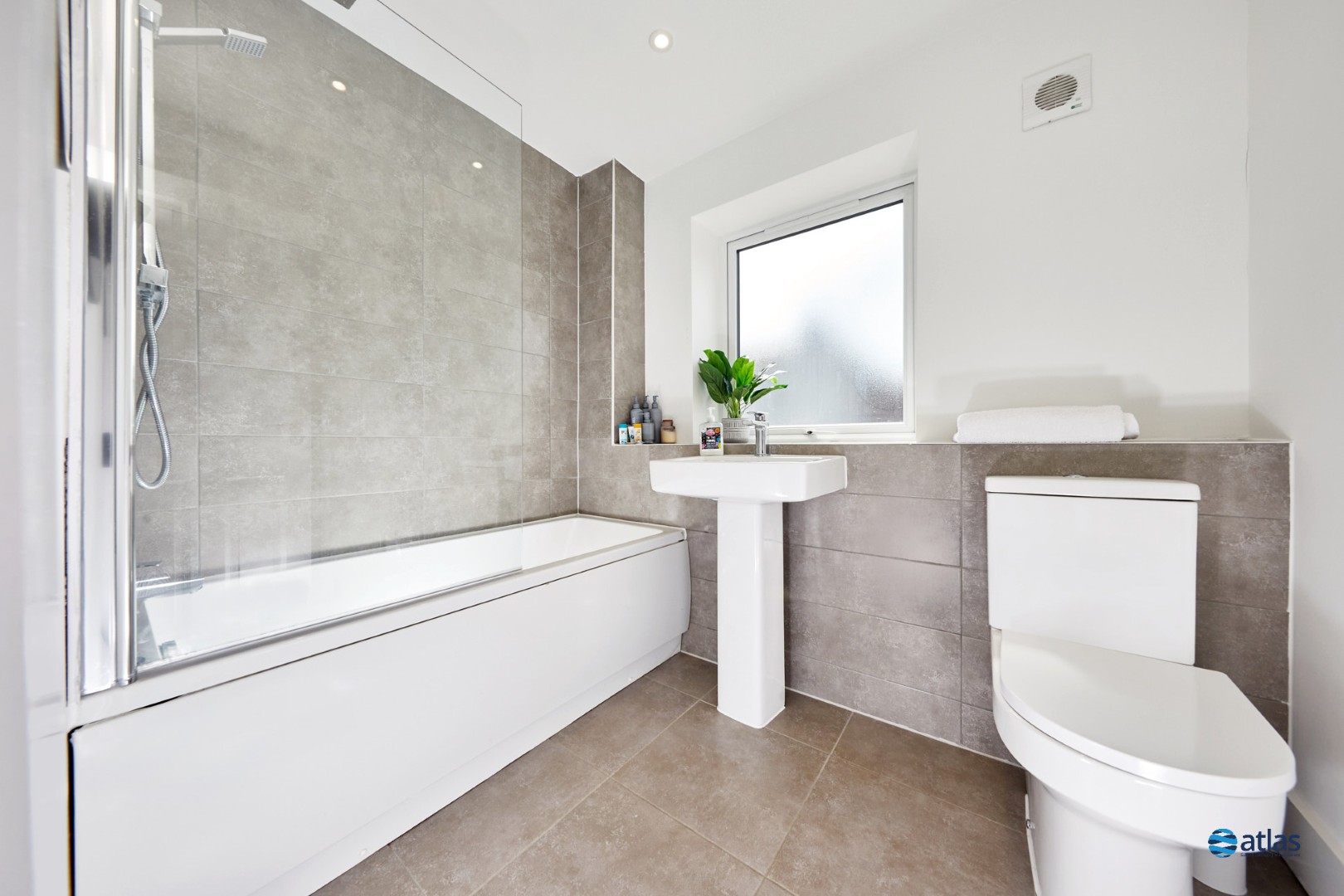 - Modern Bathroom with Bath and Overhead Shower