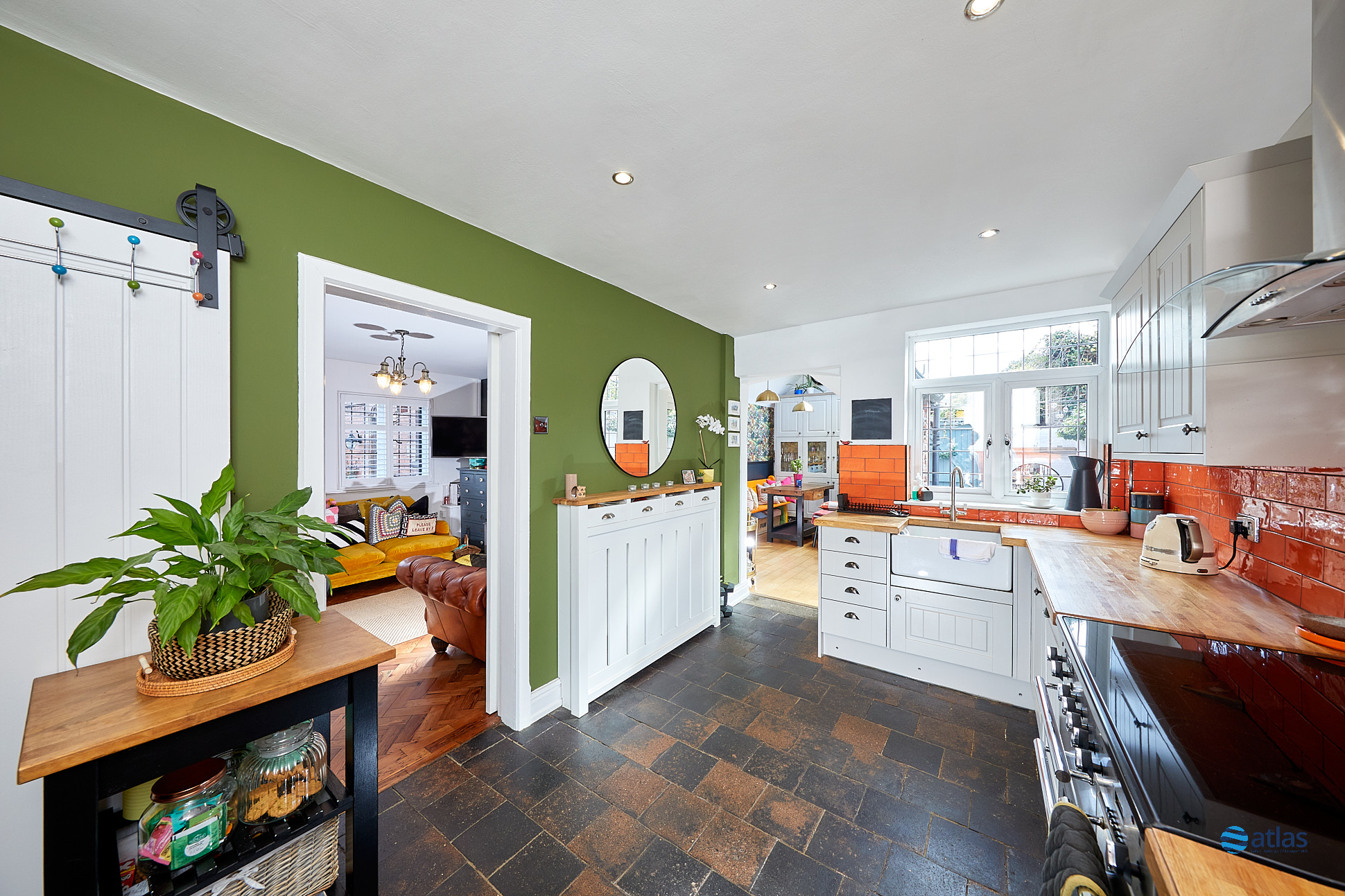 Stepping into the lounge, you are greeted by a cosy log burner, creating a warm and inviting atmosphere. The lounge flows into the contemporary fitted kitchen, which can be elegantly separated by stylish sliding barn doors. The kitchen features a range cooker and classic Belfast sink – perfect for both everyday living and entertaining. A bright morning room, complete with Velux roof windows, continues the sense of light and space, making it a delightful spot to start the day.