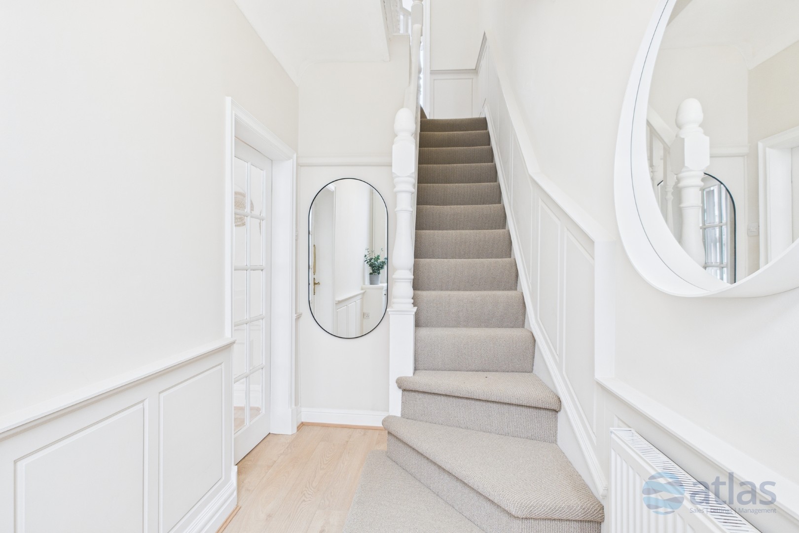 Upstairs, new carpet has been fitted to the staircase leading to three well-proportioned bedrooms. Two are generous doubles, while the third offers flexibility as a guest room, nursery or home office. A stylish modern bathroom suite completes the accommodation, offering a calm and elegant space to unwind.