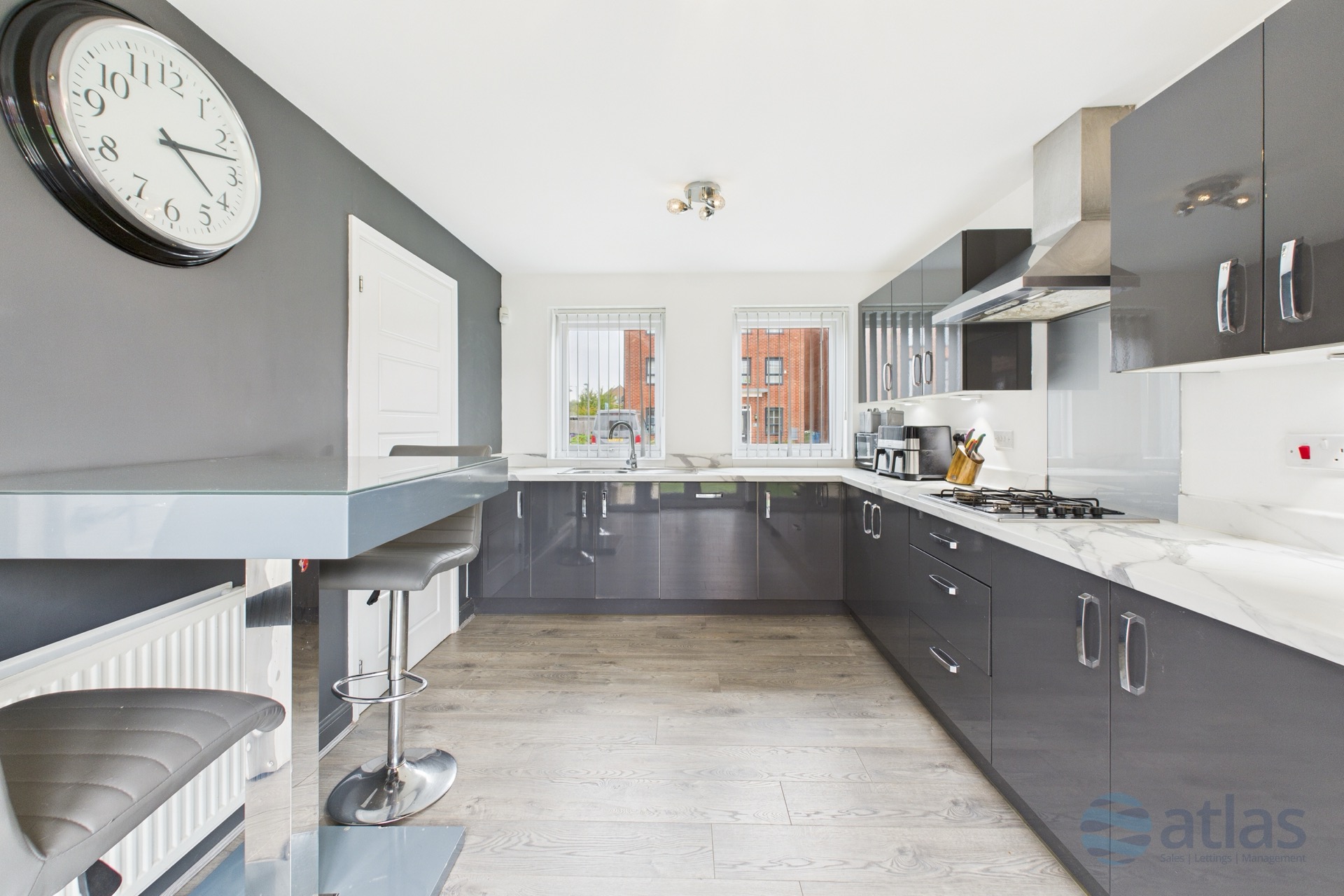Brought to the market by Atlas Estate Agents, this impressive semi-detached home on Warmwell Close, Speke, offers modern family living across three well-designed floors. The heart of the home is a contemporary kitchen complete with integrated appliances and French doors opening onto a private garden and patio—perfect for entertaining. The spacious lounge, with its striking floor-to-ceiling windows and matching French doors, floods the space with natural light.