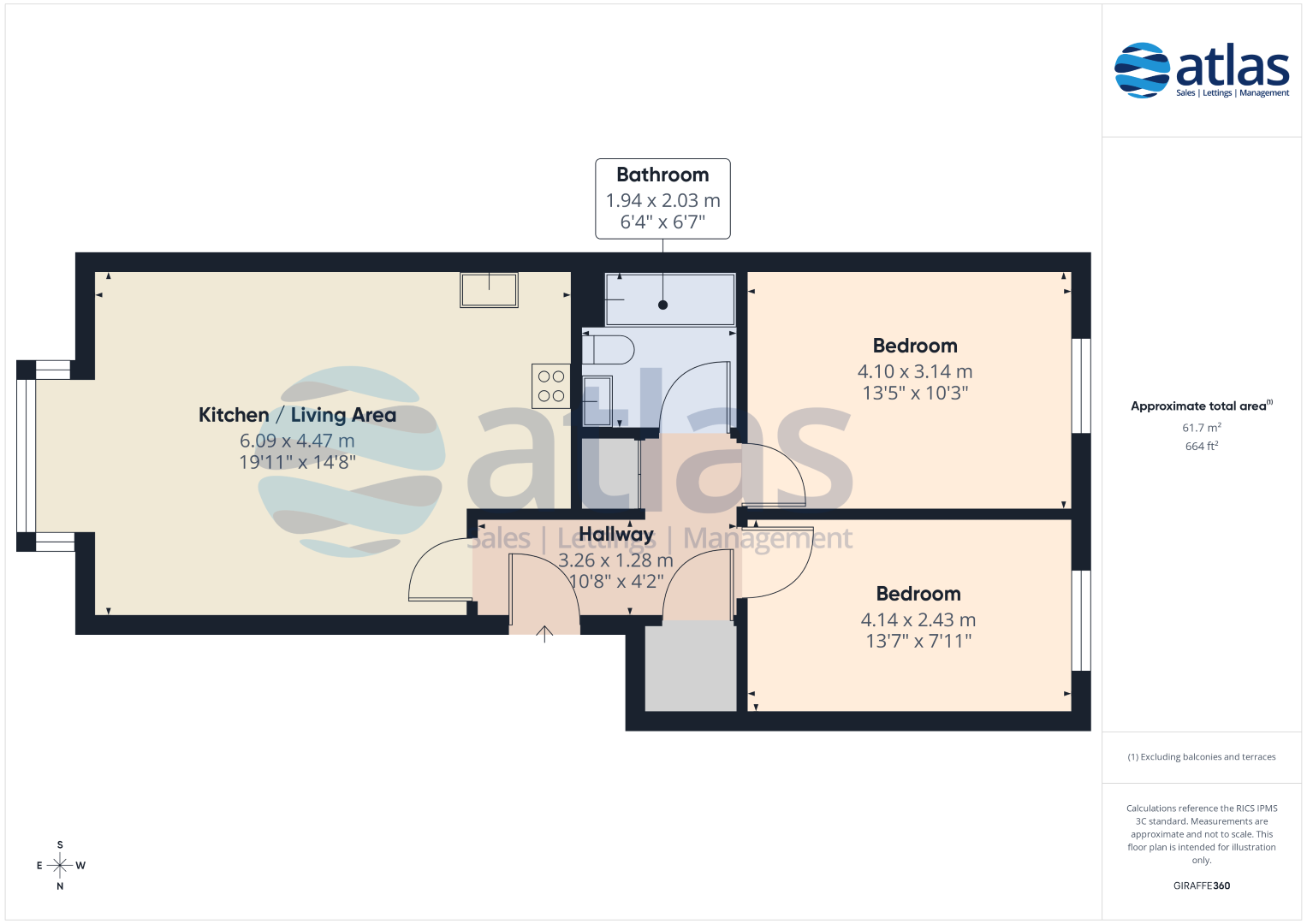 The apartment boasts two well-proportioned double bedrooms, each offering a calm and comfortable retreat. A modern, well-appointed bathroom completes the layout, finished with clean lines and stylish fittings.