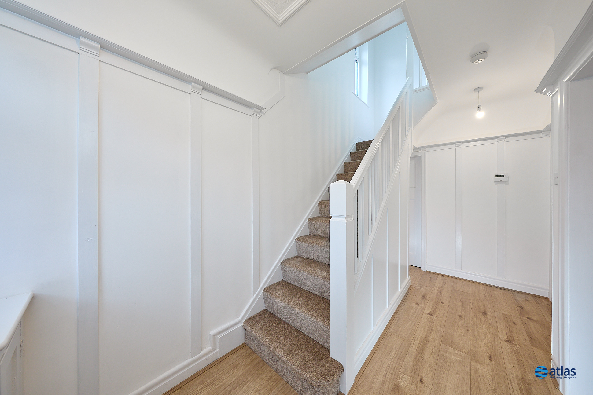 Upstairs, you’ll find two generous double bedrooms along with a versatile third bedroom—ideal as a home office, nursery, or dressing room. The accommodation is served by a newly fitted modern family bathroom, finished to a high standard to ensure a sense of luxury day to day.