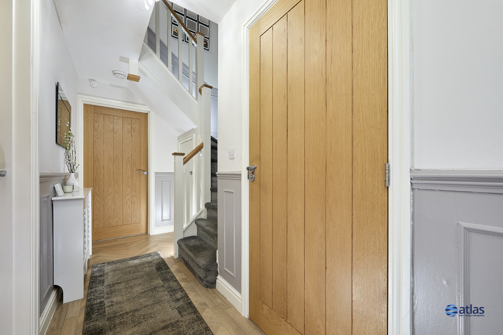 A convenient downstairs W.C. adds practicality to the ground floor, while upstairs reveals four generously sized double bedrooms, including a luxurious en-suite to the principal bedroom. The stunning family bathroom is finished to a high standard, featuring elegant modern fittings and underfloor heating to the en-suite, providing a true retreat at the end of the day.