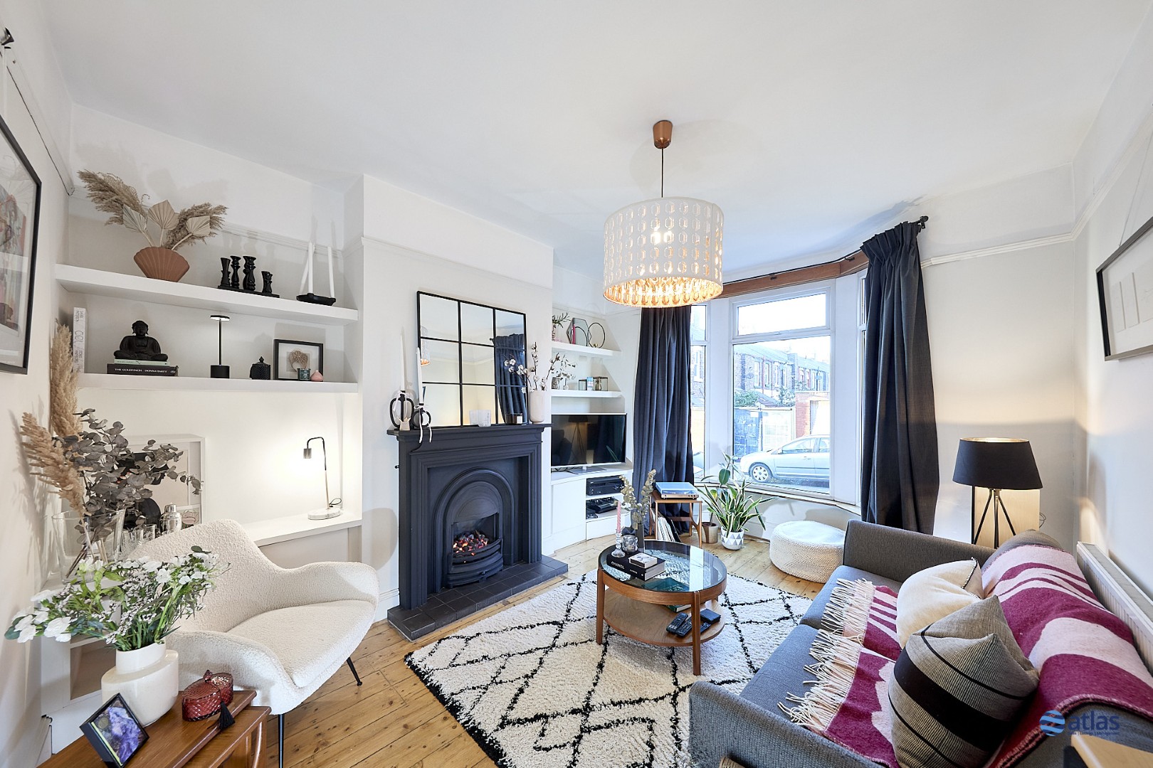 A bright and welcoming lounge sits at the front of the property, its bay window drawing in natural light while a character fireplace adds warmth and charm. Beyond, two inviting reception rooms create flexible spaces for everyday living, whether you’re hosting friends, relaxing with family or carving out a quiet corner to unwind.