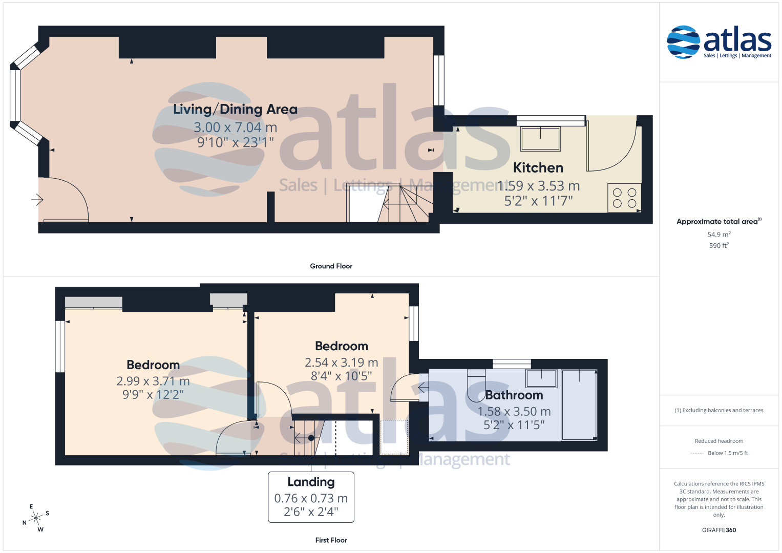 Floor Space: 590 square feet / 55 square metres