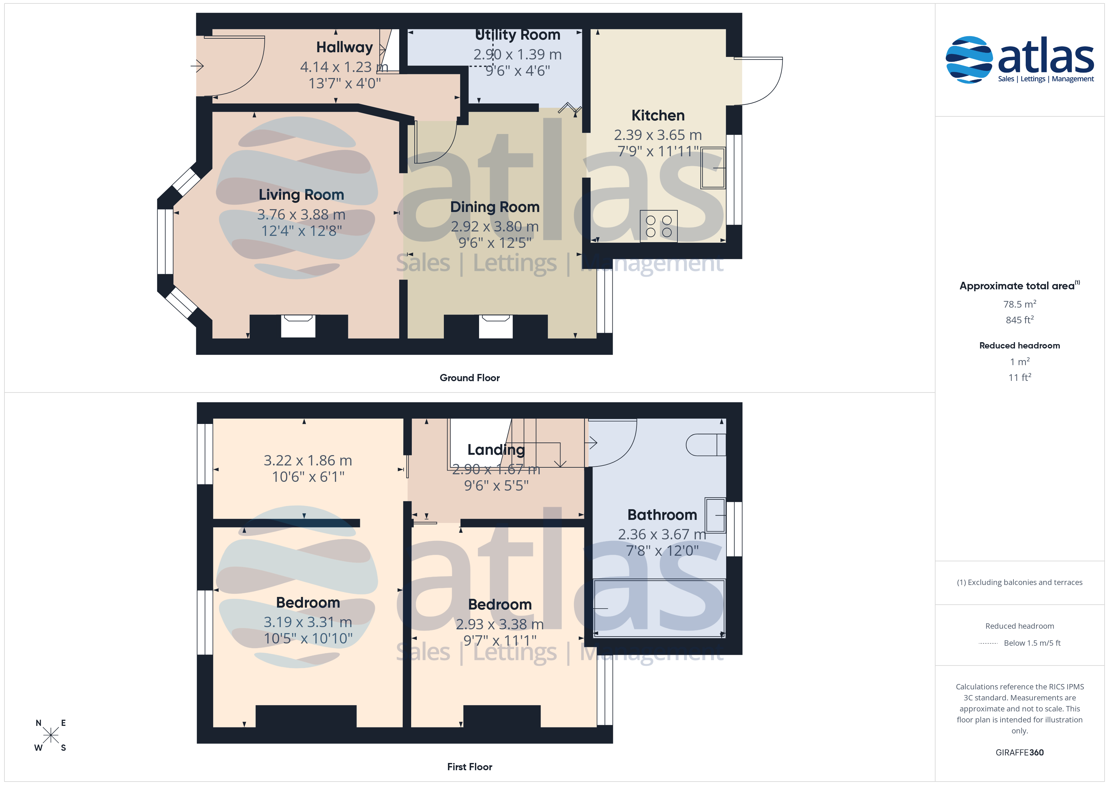 Upstairs, two double bedrooms provide ample room for rest, including a master bedroom with a walk-in wardrobe area. A generously sized family bathroom completes the upper level.