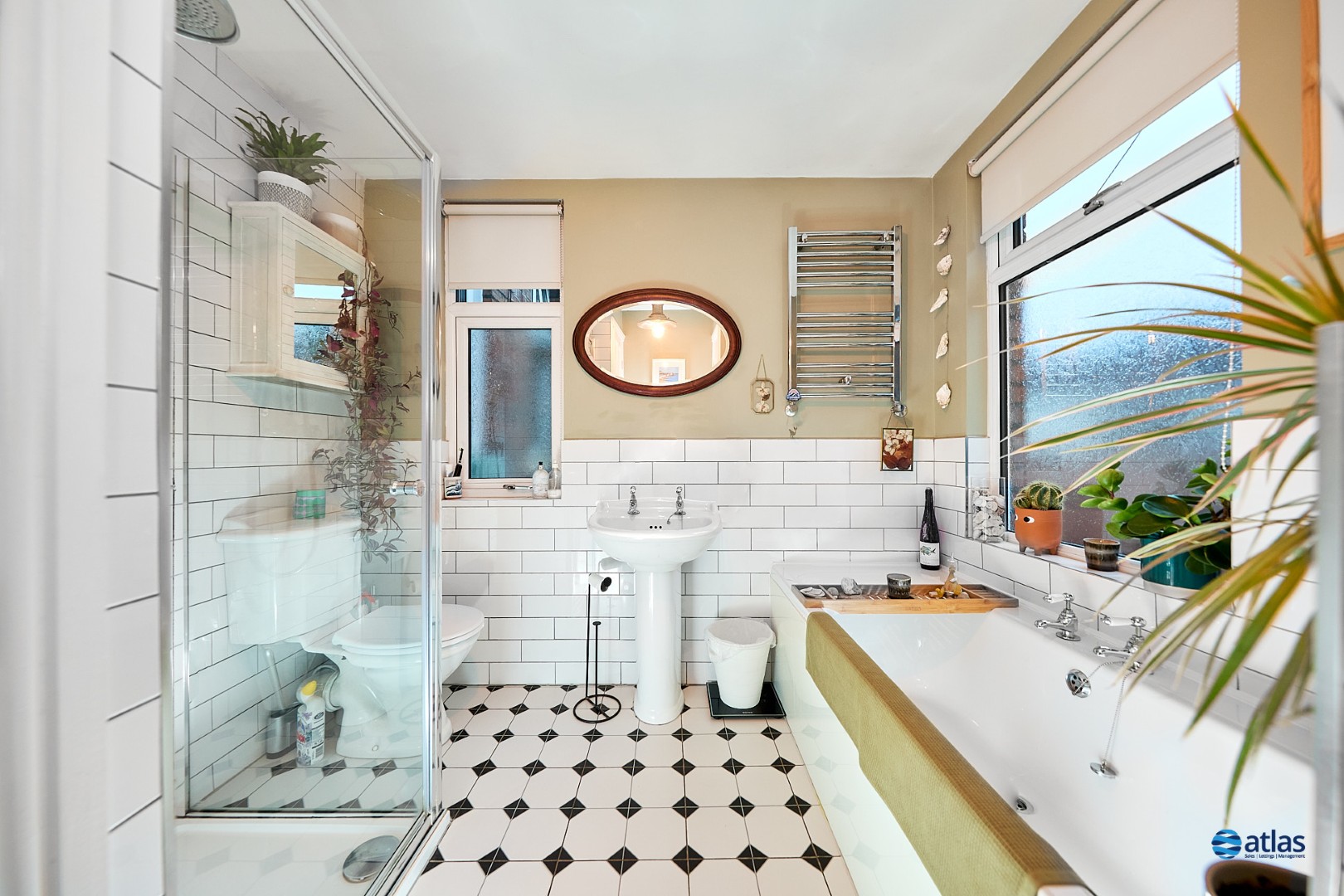 The first floor hosts a beautifully appointed contemporary bathroom, complete with a separate shower, alongside well-proportioned bedrooms that continue the home’s blend of charm and sophistication.