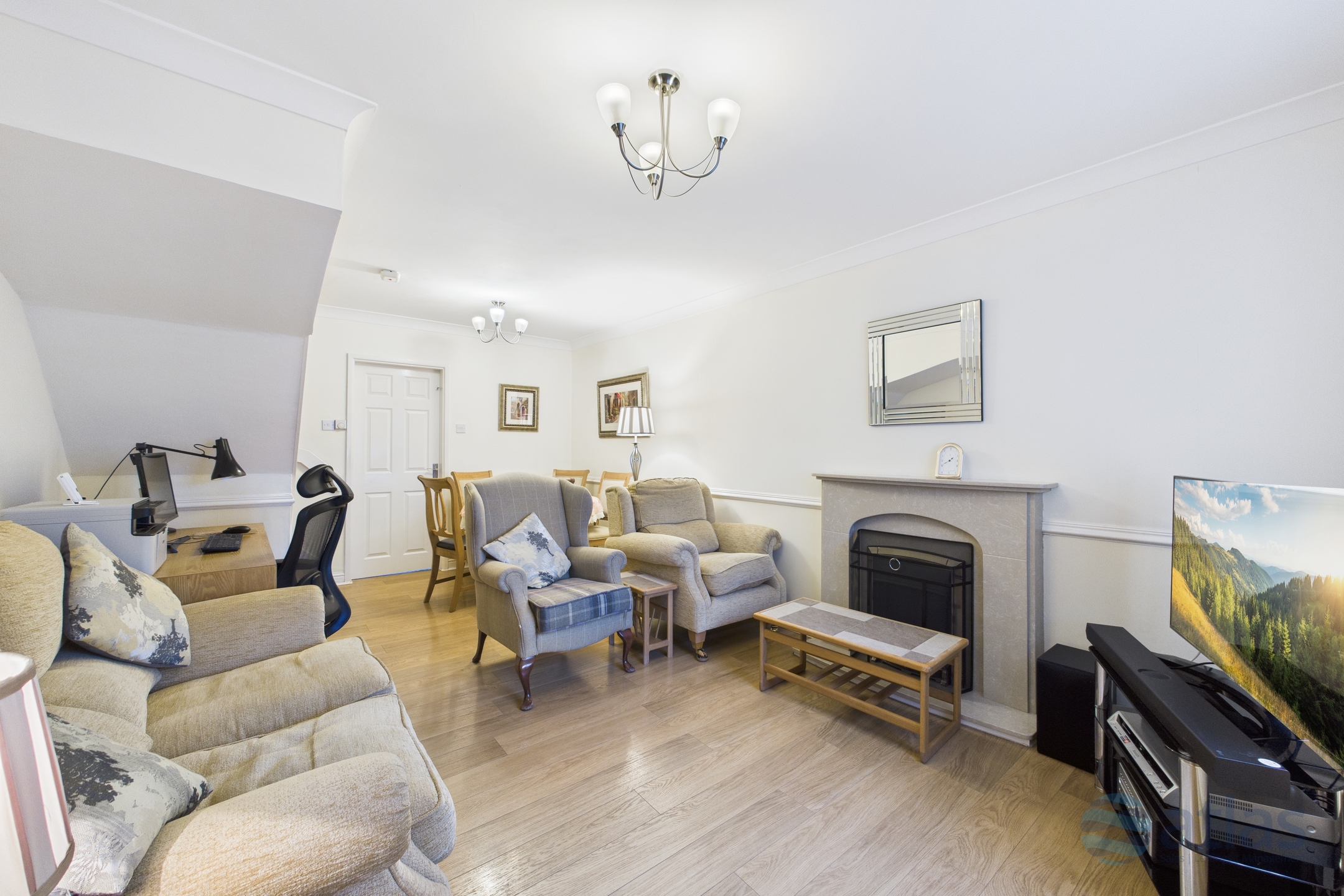 Arranged over two well-planned floors, the accommodation begins with a warm and welcoming living and dining area, where an attractive fireplace creates a cosy focal point—perfect for relaxing evenings or entertaining guests. To the rear, a stylish modern fitted kitchen provides a practical yet elegant space for everyday cooking, with ample storage and worktop space to suit modern living.