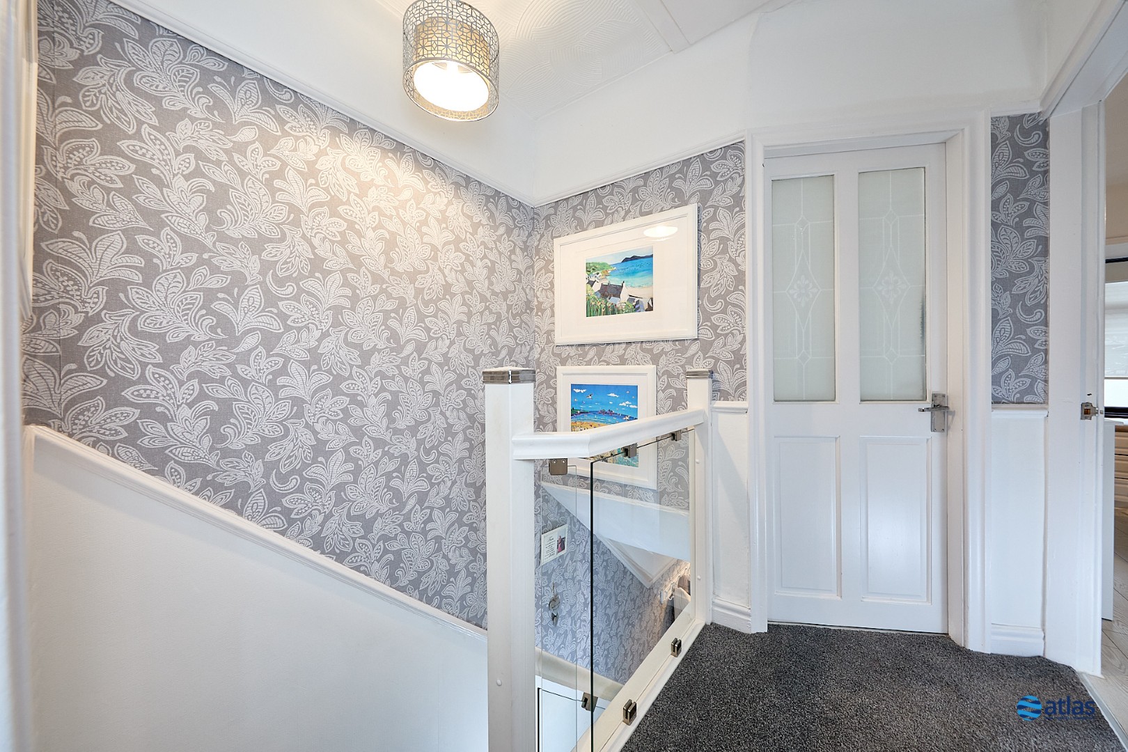 Upstairs, the accommodation continues to impress with two generous double bedrooms, each offering ample space for furnishings and relaxation. A third bedroom provides excellent flexibility, making it ideal as a nursery, home office or guest room. The contemporary fitted bathroom is finished to a high standard, completing the first floor with a clean, modern feel. In addition, a useful loft space offers valuable storage potential, helping to keep the home clutter-free.
