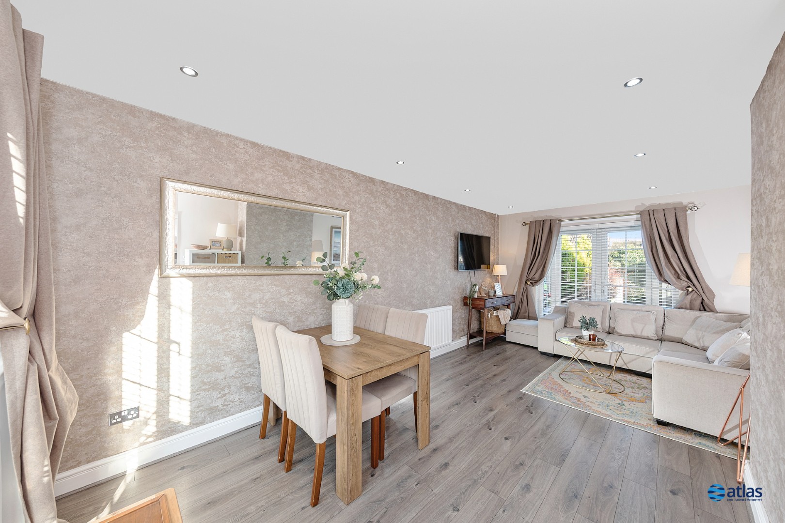 Arranged over two well-planned floors, the property offers a welcoming sense of space and light throughout. At its heart lies a bright, open-plan living and dining area, ideal for both everyday living and entertaining. The modern, well-appointed kitchen is thoughtfully designed, complemented by a practical downstairs utility and storage space that keeps the home effortlessly organised.