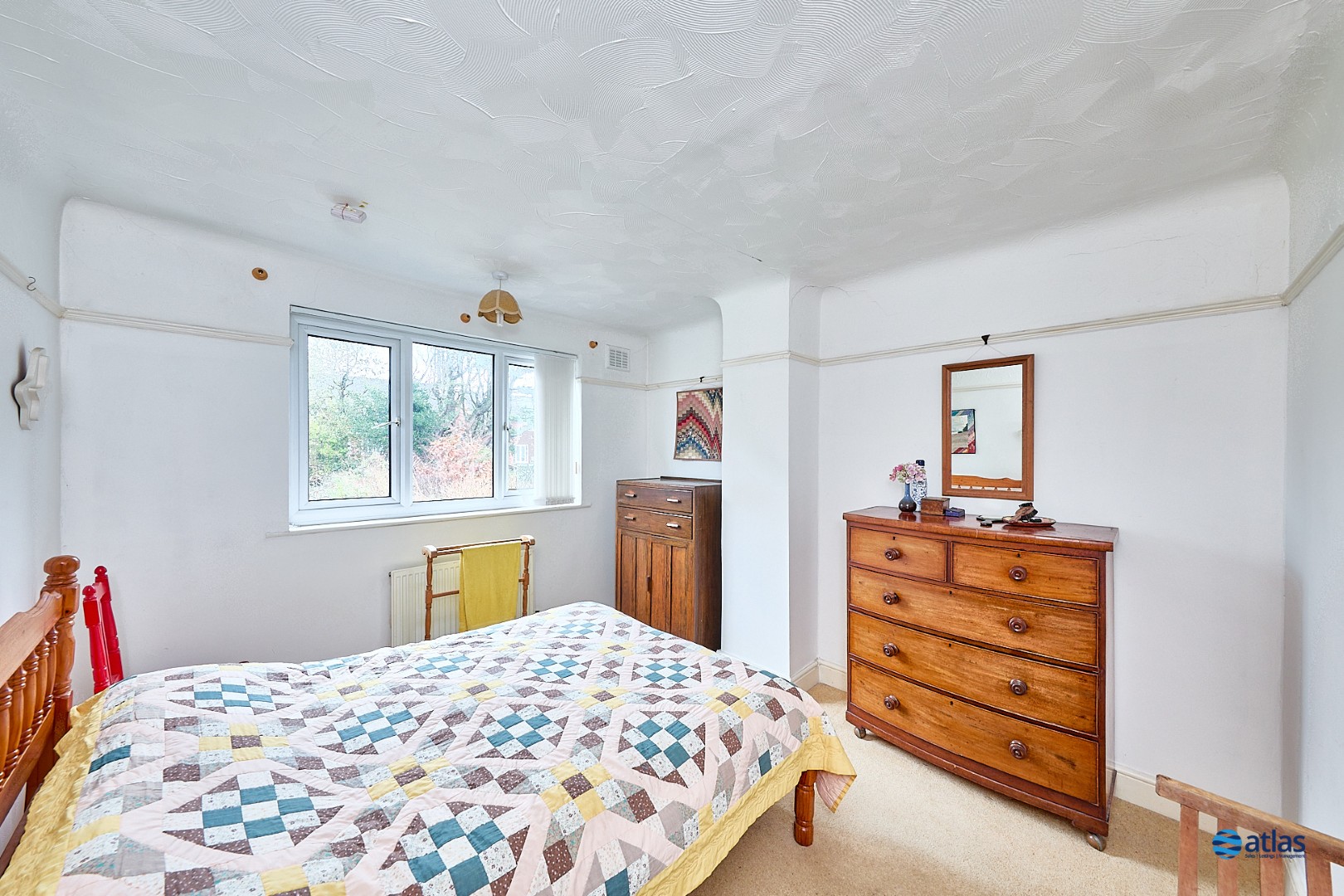 Upon arrival, an extended porch provides a welcoming entrance, while a private, large driveway ensures ample off-road parking. Inside, the accommodation comprises three bedrooms, a family bathroom, and a versatile downstairs WC for added convenience. The master bedroom features fitted wardrobes, offering generous storage without compromising on space.