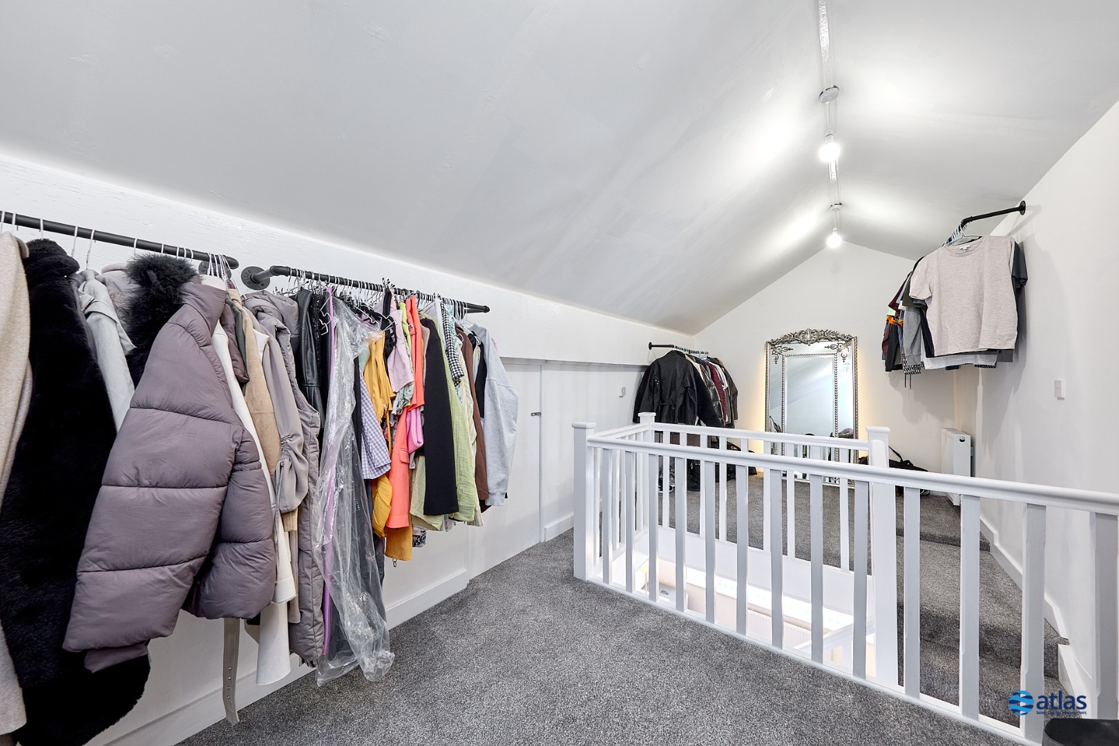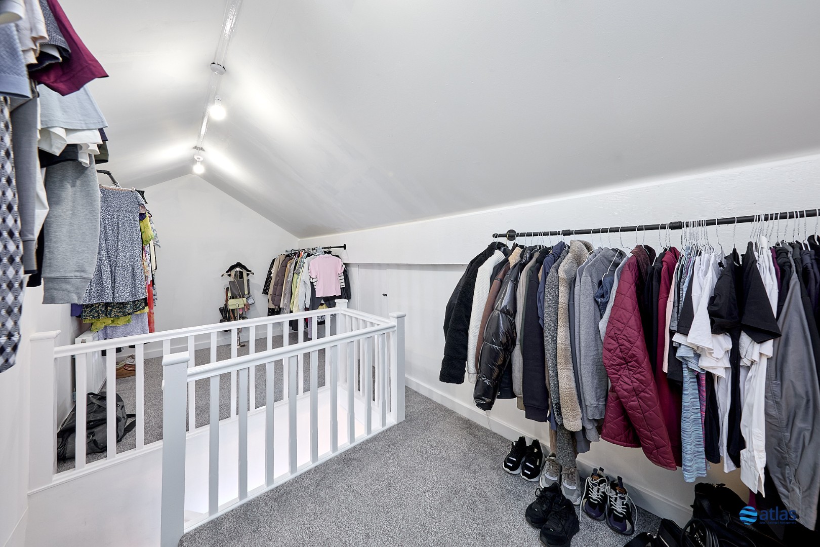 The ground floor flows effortlessly, with a stylish kitchen forming the heart of the home and two reception rooms providing flexible spaces for both everyday living and entertaining. The former garage has been professionally converted into a versatile second reception room, while a convenient ground-floor WC adds to the practical appeal. A clever under-floor storage hatch offers discreet space for life’s essentials, keeping the home uncluttered and calm.