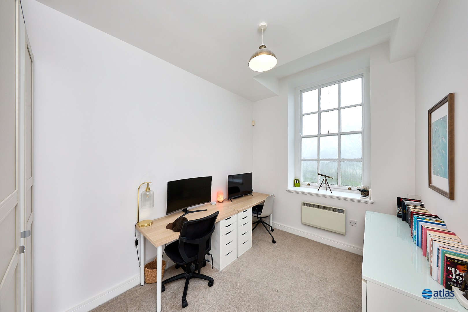 The kitchen is thoughtfully designed with integrated appliances, perfect for both everyday living and entertaining, while attractive sash windows throughout flood the home with natural light. The principal bedroom benefits from fitted wardrobes, complemented by additional storage cupboards in the hallway to keep the home clutter-free.