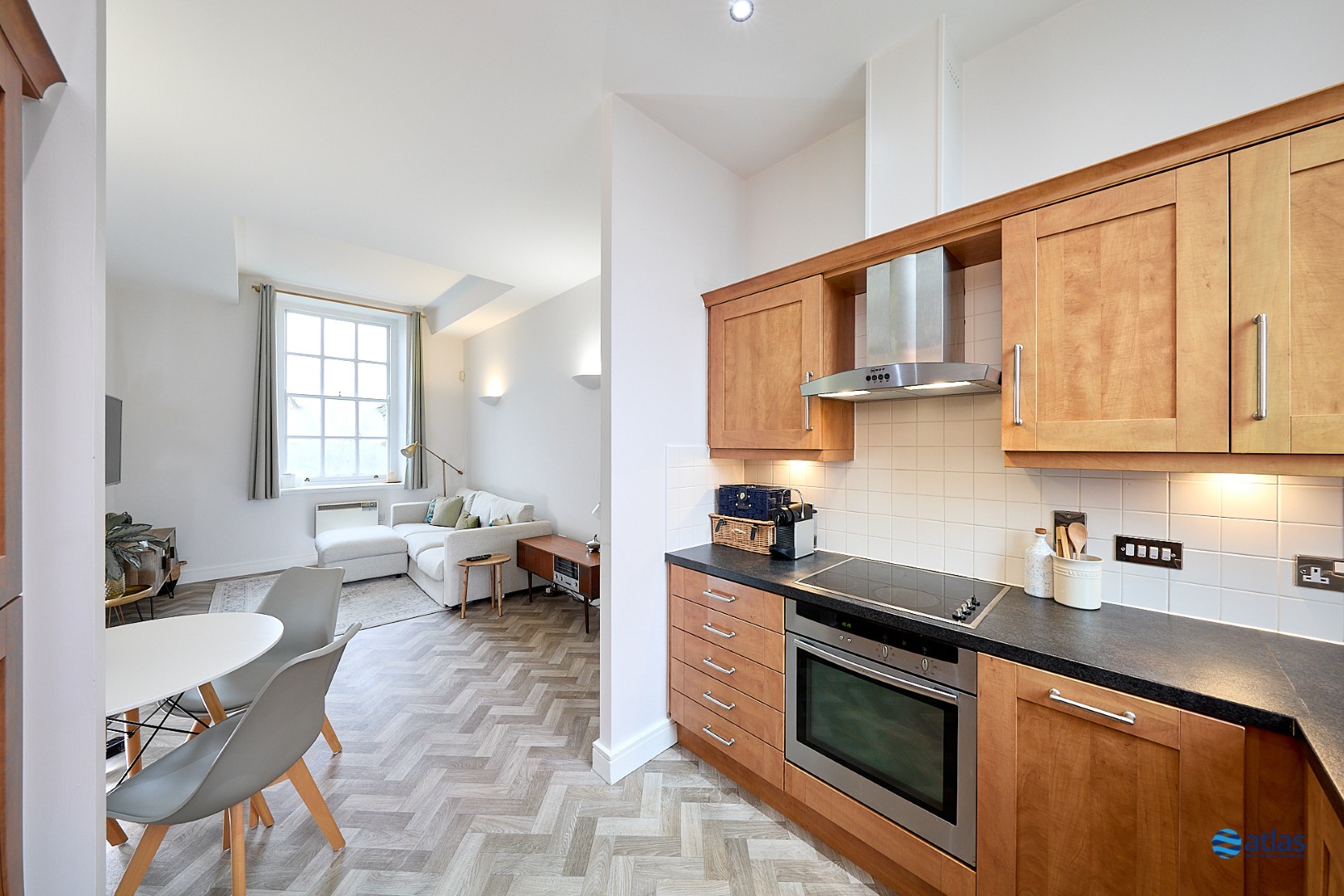 Brought to the market by Atlas Estate Agents, this charming first-floor apartment in Springhill Court, Wavertree, offers a delightful blend of contemporary style and comfortable living. Arranged over a single floor, the accommodation comprises a welcoming reception room, a spacious open-plan kitchen and dining area, two bedrooms, and a modern bathroom.