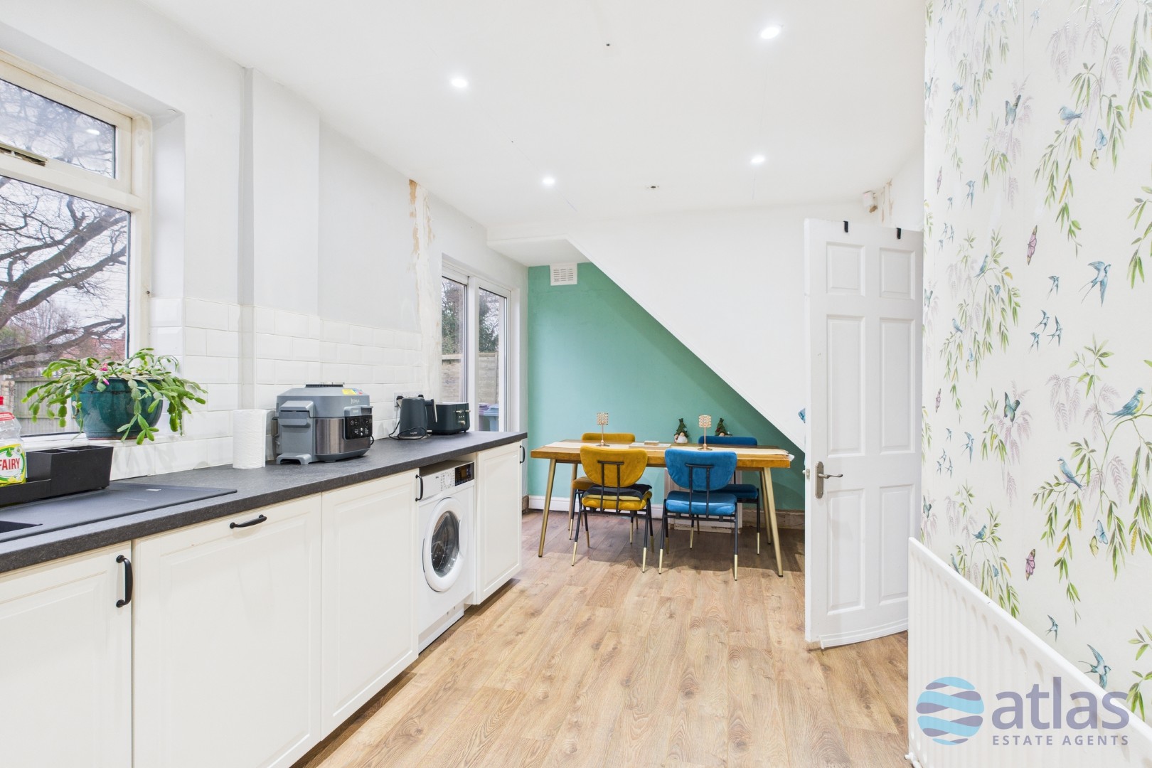 Arranged over two well-proportioned floors, the property has been thoughtfully updated, including a full re-wire for complete peace of mind. At the heart of the home lies a stylish, newly fitted modern kitchen, opening seamlessly into a generous dining area – a sociable, light-filled space perfectly suited to entertaining family and friends. New flooring across the ground floor complements the fresh, modern feel, while plush new carpets upstairs add warmth and comfort.