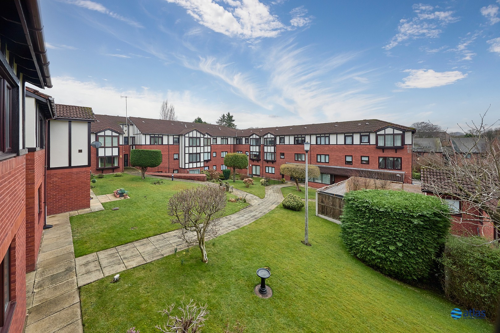 Brought to the market by Atlas Estate Agents, this attractive second-floor flat sits quietly within a beautifully maintained and exclusive development for residents aged 55 and over, set amidst stunning landscaped grounds on the ever-popular Quarry Street in Woolton, L25. Immaculately presented throughout, the property enjoys a pleasant open outlook and benefits from impeccably kept communal areas that immediately set the tone for the quality found within.