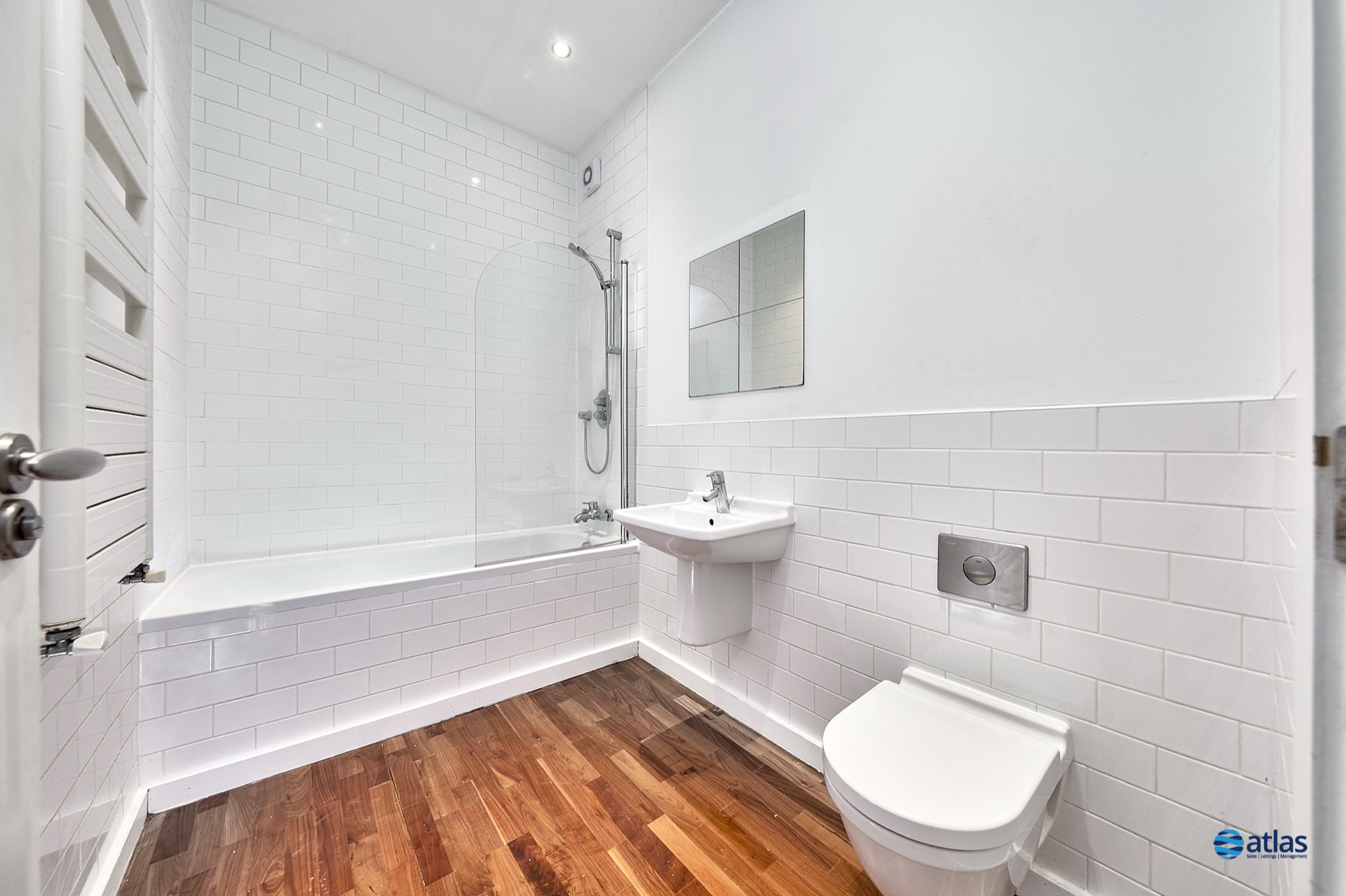 The spacious bedroom provides a calm and comfortable retreat, complete with fitted wardrobes offering excellent storage. A sleek, tiled bathroom serves the property, fitted with a bath and overhead shower for both convenience and relaxation.