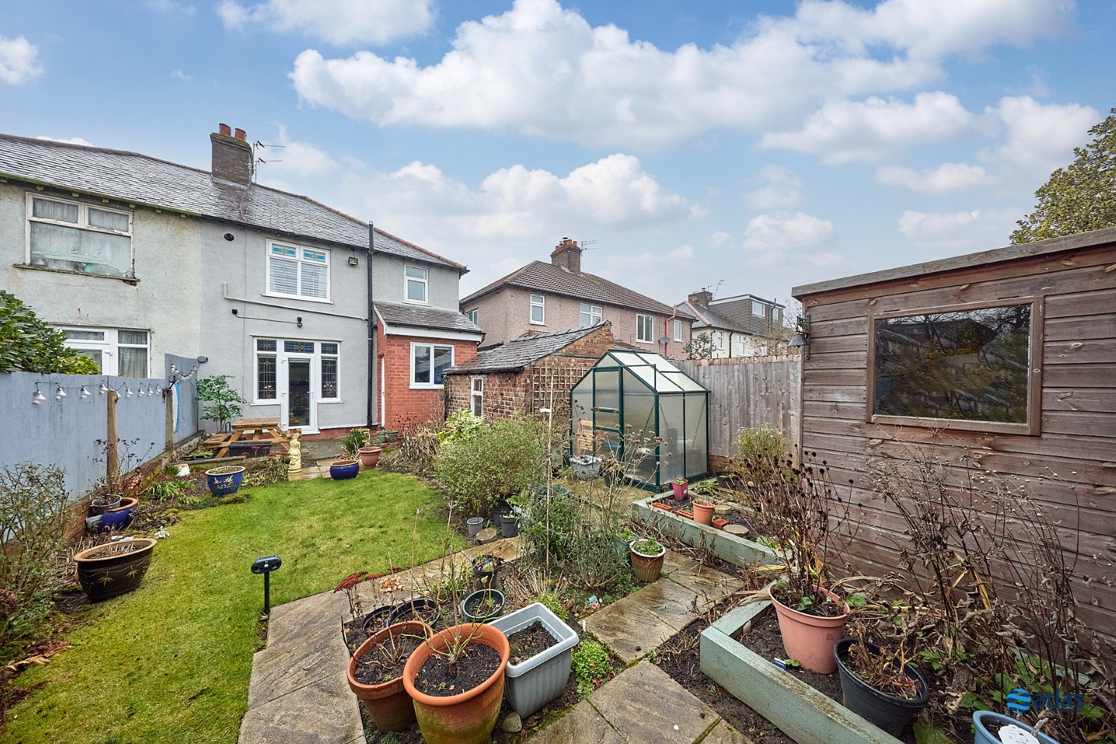 Outside, well-stocked gardens to both the front and rear provide colour, privacy and space to enjoy the outdoors, with the added bonus of a greenhouse for those with green fingers. A brick-built detached shed with external electric points and power sockets offers excellent storage or workshop potential.