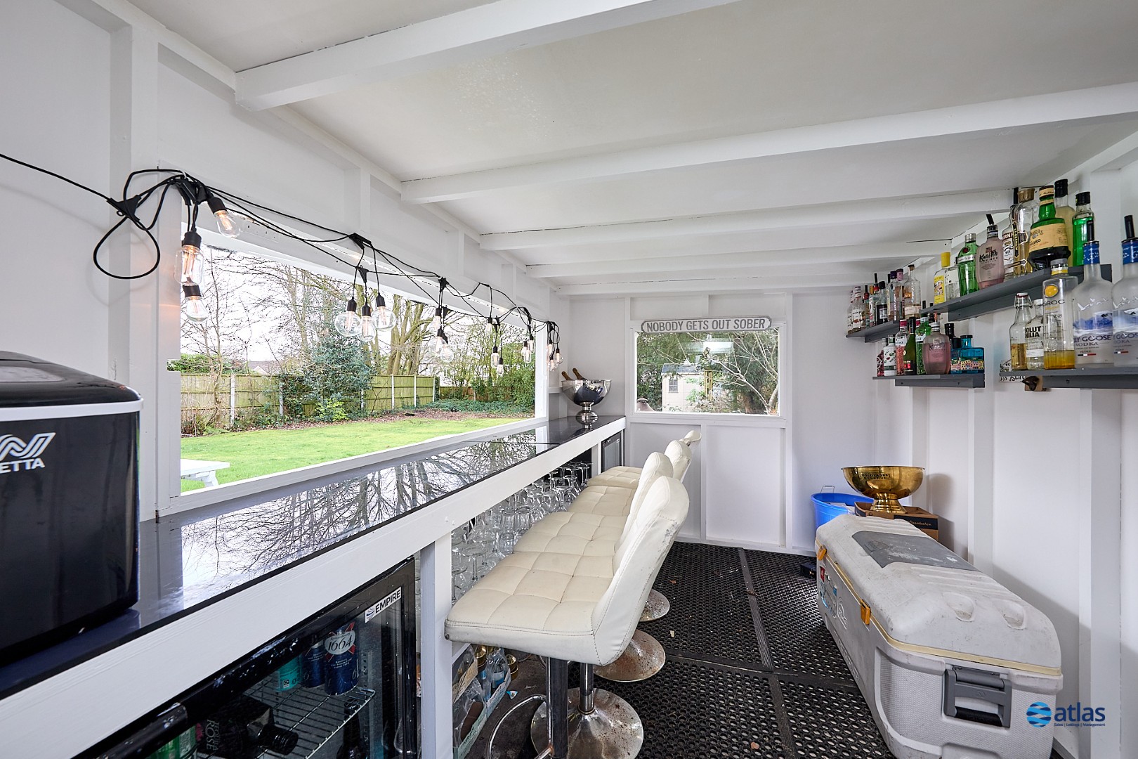 - Expansive, South-Facing, Beautifully Landscaped Rear Garden Complete with a Custom Outdoor Bar and a Large Patio for Entertaining.