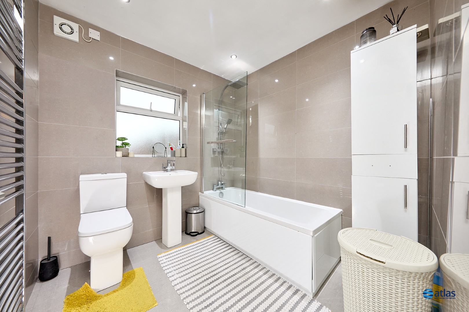 Upstairs, three well-proportioned bedrooms offer comfortable accommodation for families, guests or those seeking a dedicated home office. The contemporary family bathroom is finished to a high standard, complete with a bath and overhead shower — a calm and stylish retreat at the end of the day.