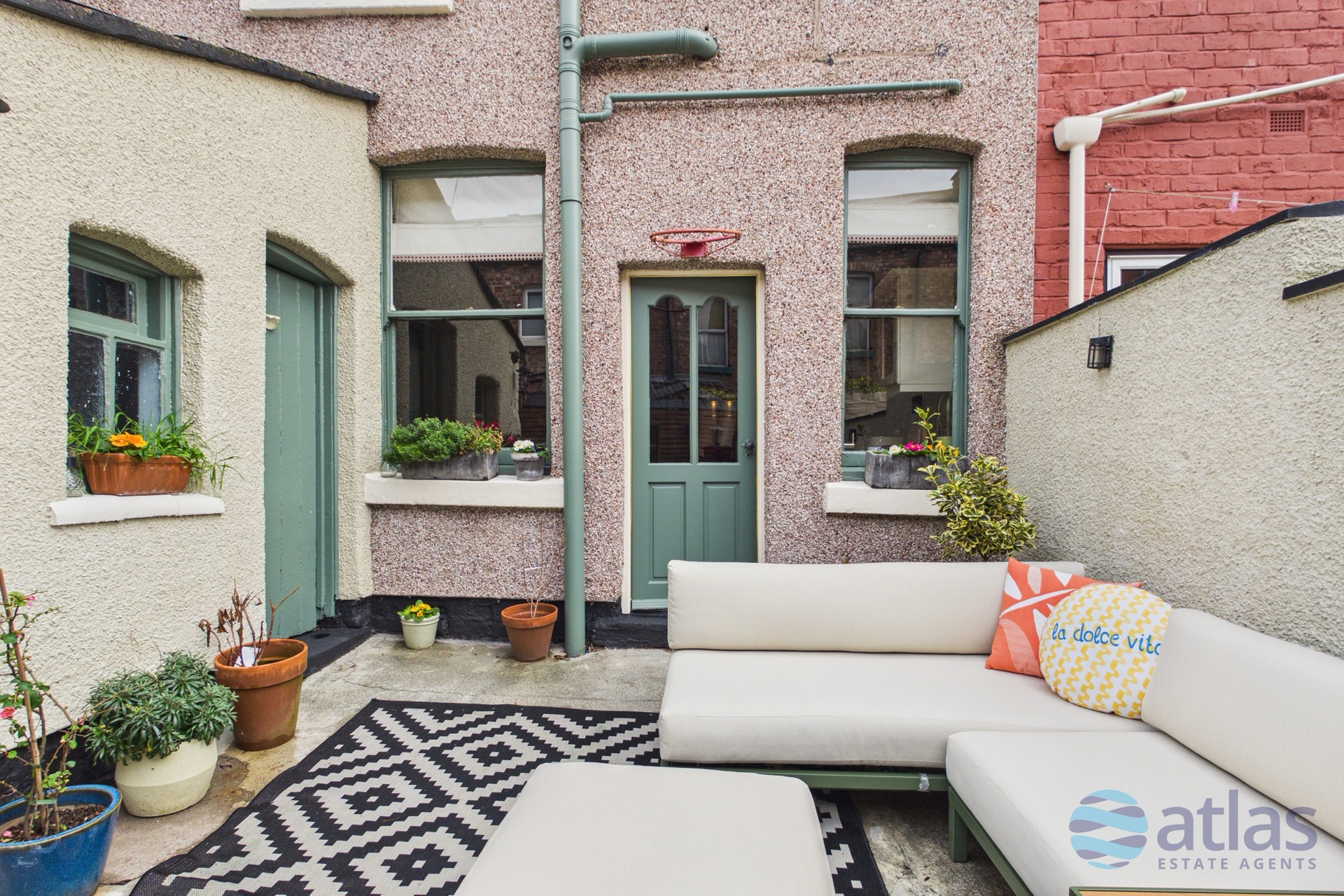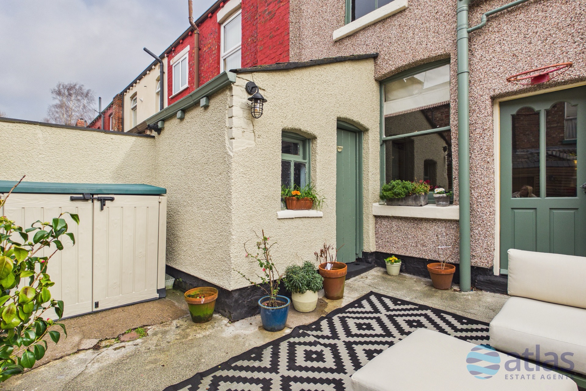 Externally, the property continues to impress with a stylish rear yard, featuring wooden panelling along the back wall to create a smart and private outdoor space. A brick-built out house provides valuable additional storage.