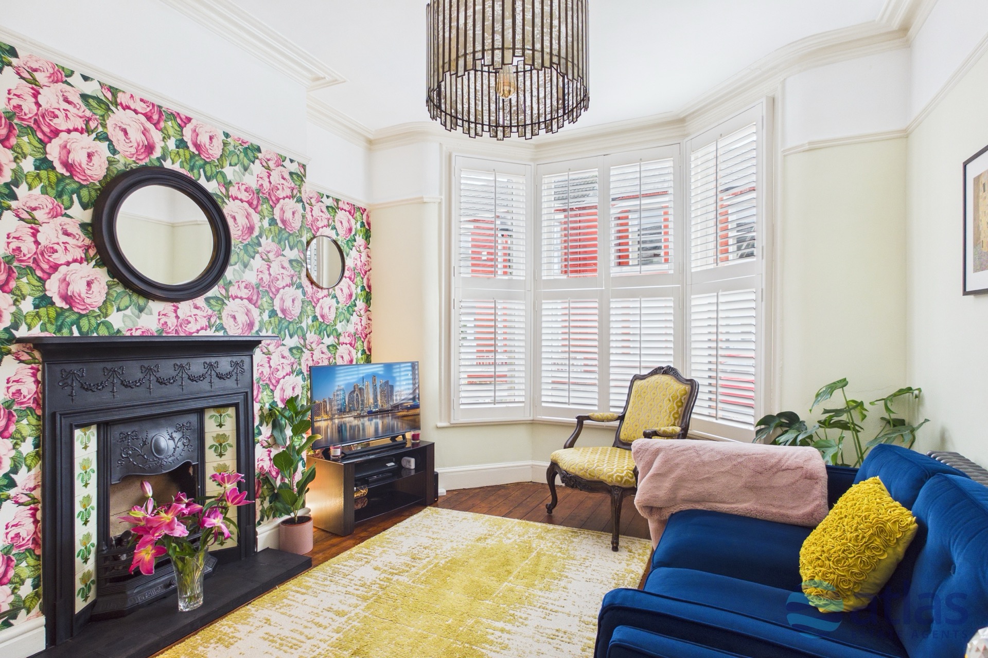 Thoughtfully designed and impeccably decorated throughout, the property seamlessly blends period charm with modern comfort. Original features, including elegant coving and a striking feature fireplace, celebrate the home’s heritage, while stylish column radiators add a contemporary touch. White plantation shutters grace all front-facing rooms, enhancing both privacy and kerb appeal.