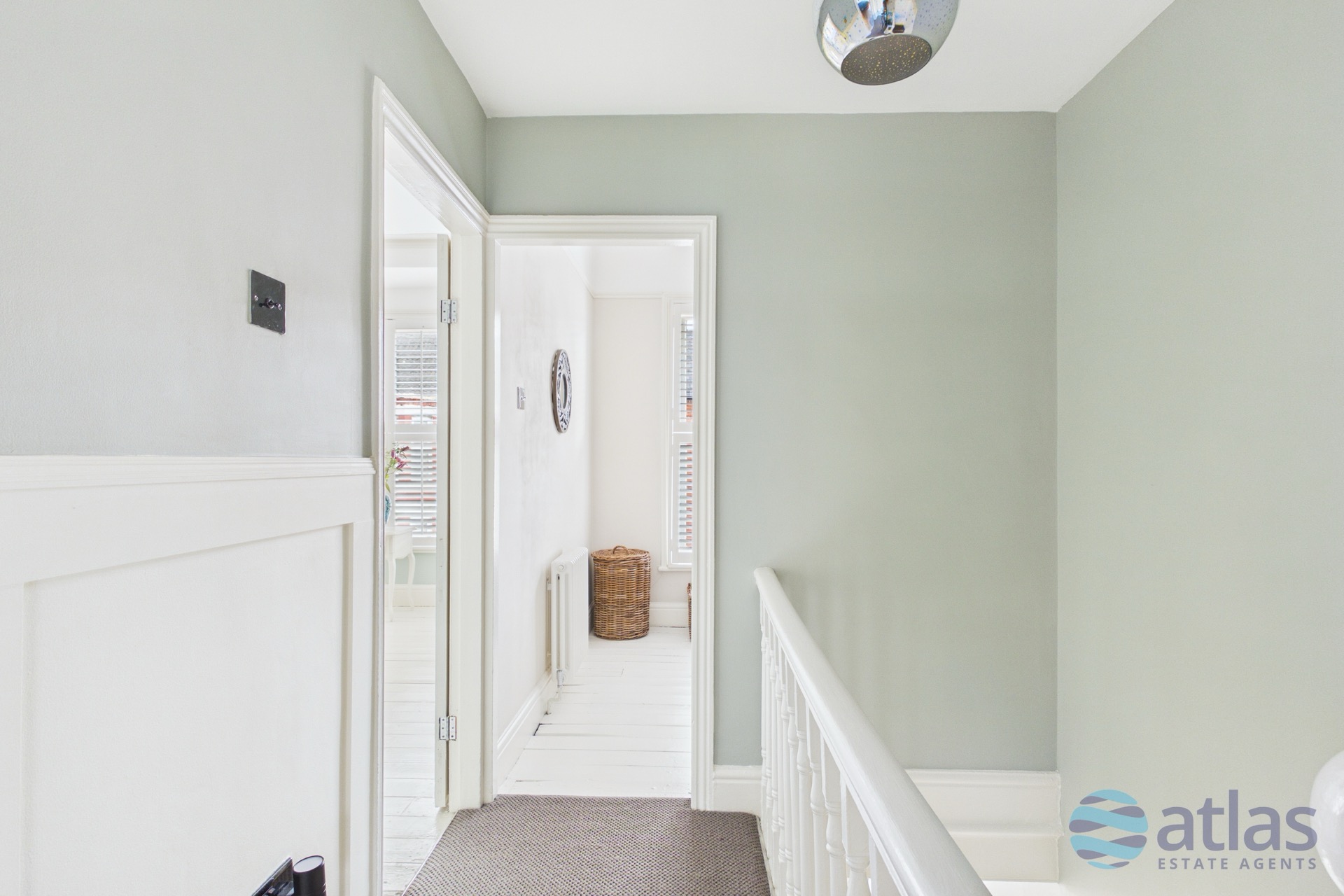 Upstairs, there are three well-proportioned bedrooms. Two are particularly spacious, while the third offers flexibility as a nursery, guest room or home office. The Victorian-style family bathroom is beautifully appointed, complete with a classic claw-foot bath.