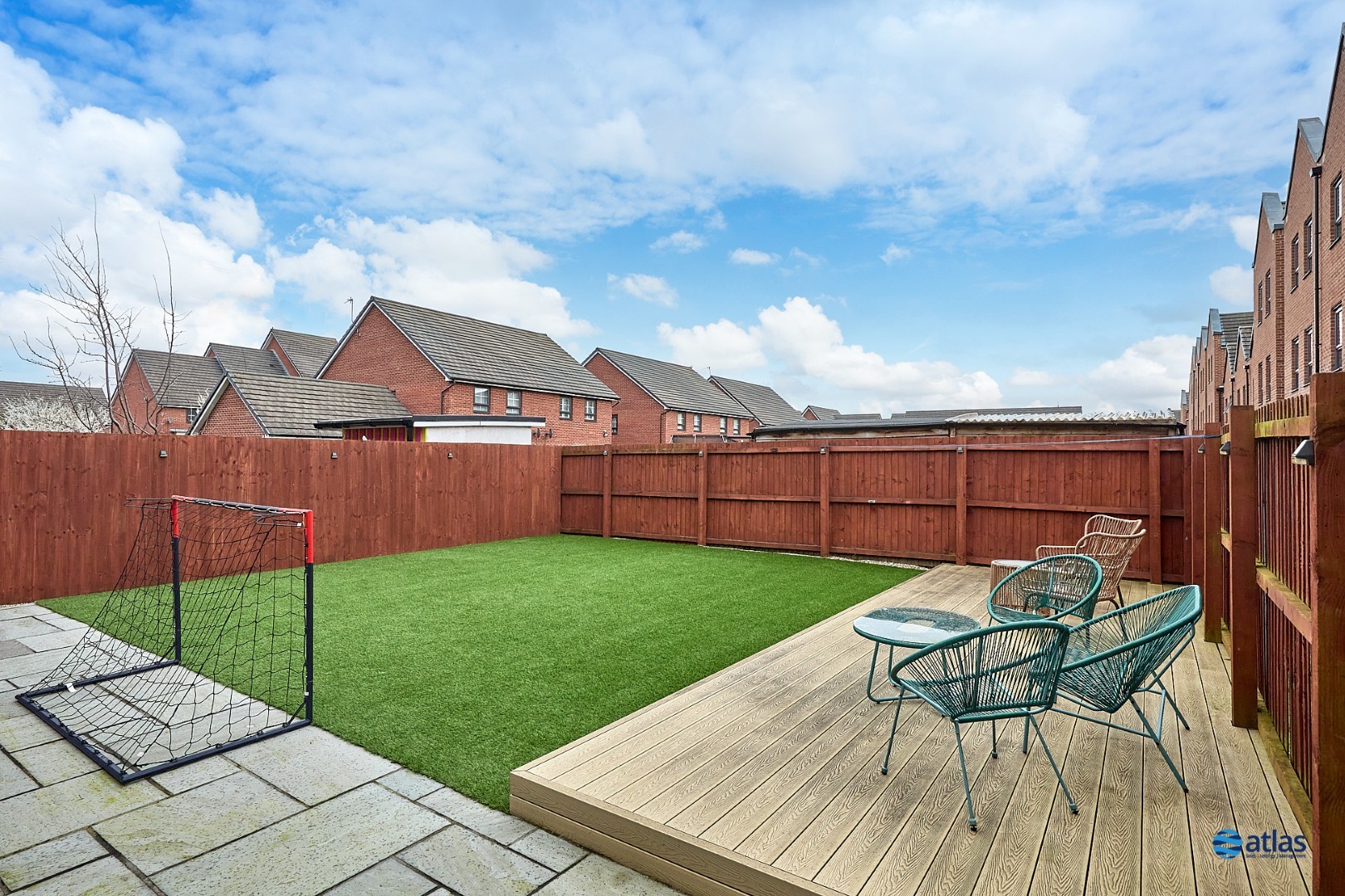 To the rear, the immaculately maintained garden is a true highlight. A generous decking area creates the perfect stage for summer barbecues, morning coffees or evening drinks with friends, all framed by a neatly kept lawn that enhances the sense of tranquillity and space.