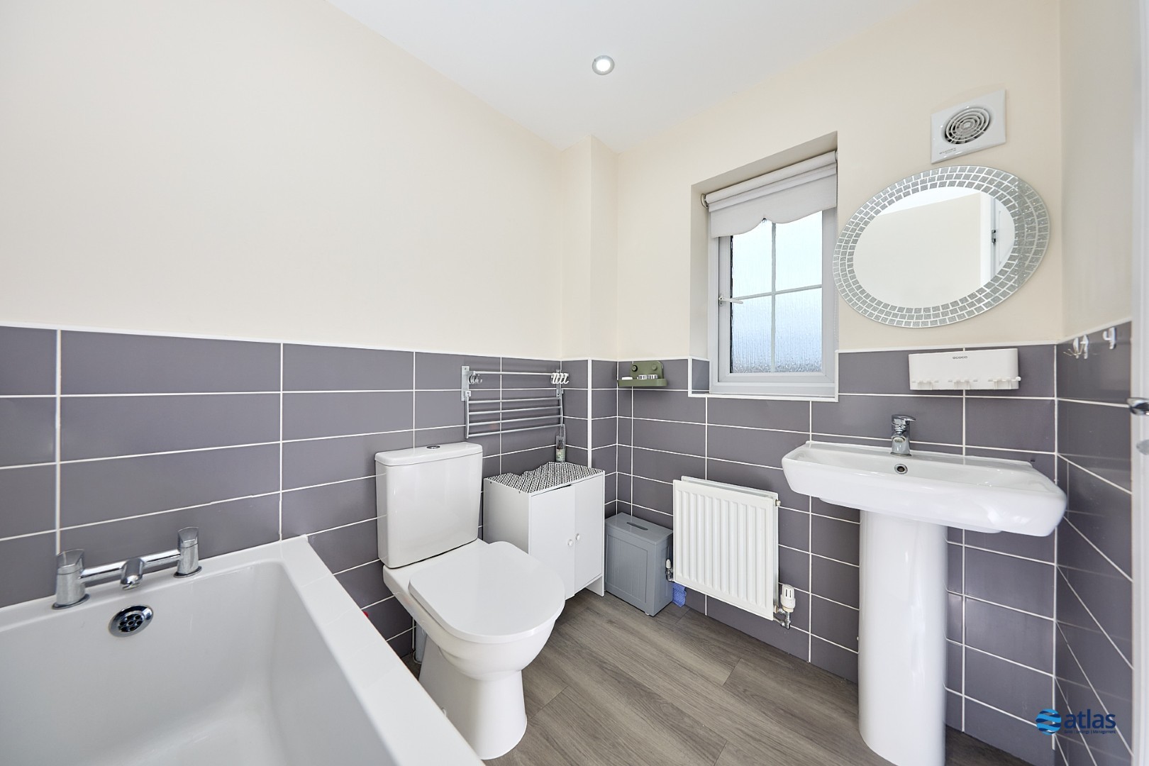 Upstairs, three fully carpeted bedrooms provide comfort and warmth, each thoughtfully proportioned to suit growing families or visiting guests. The first floor also hosts two stylish bathrooms, including a well-appointed en-suite to the principal bedroom, offering both privacy and a touch of everyday luxury.