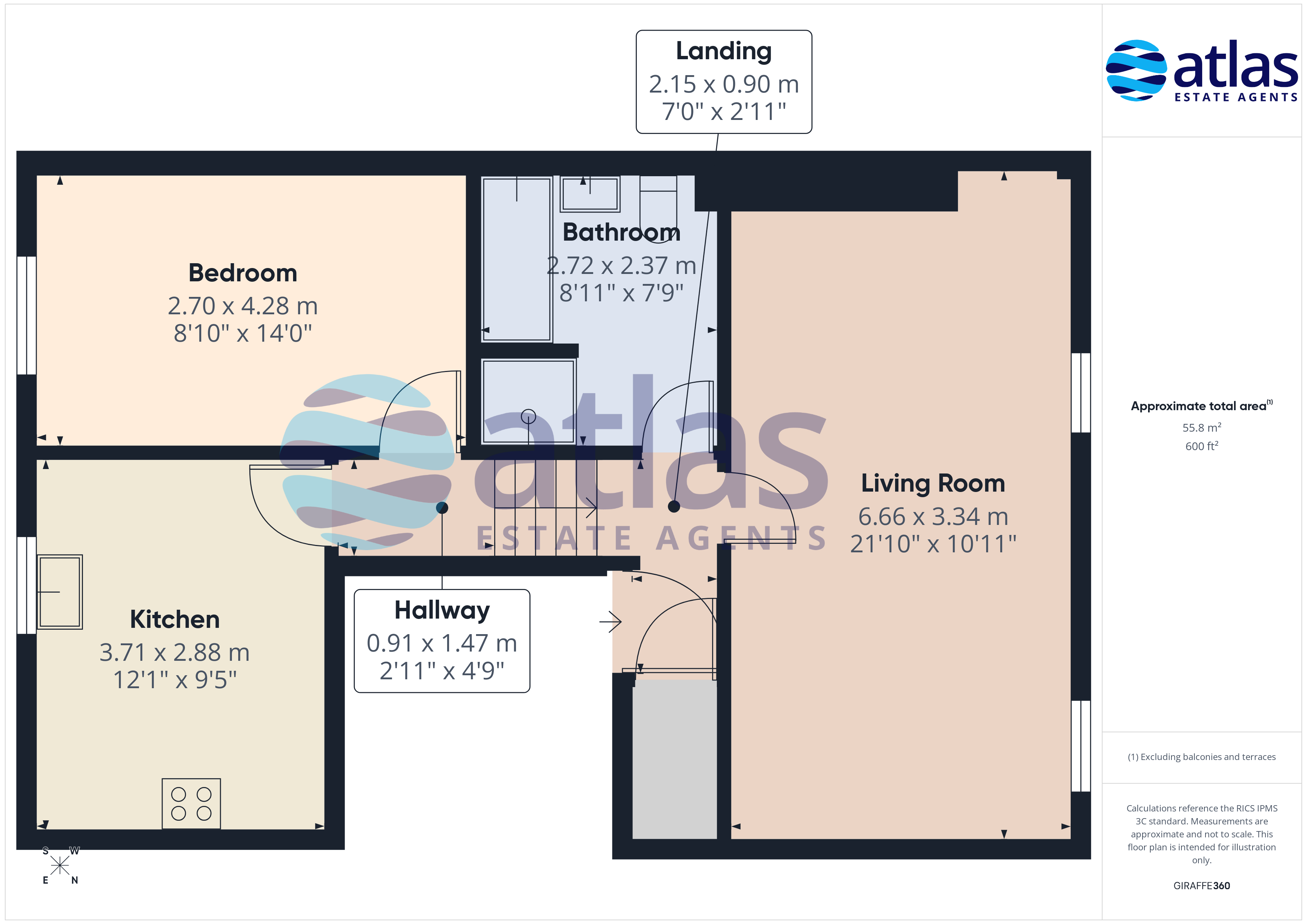 Floor Space: 60 square metres / 646 square feet