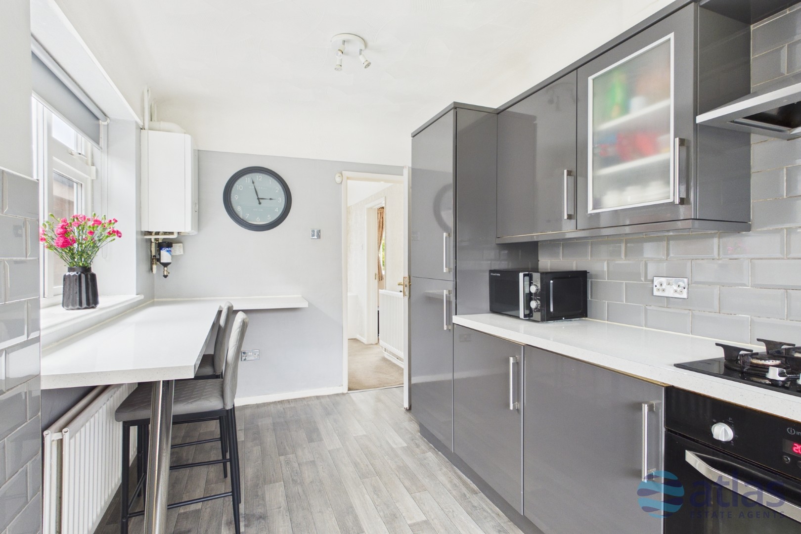 - Modern Fitted Kitchen with Integrated Appliances and Breakfast Bar