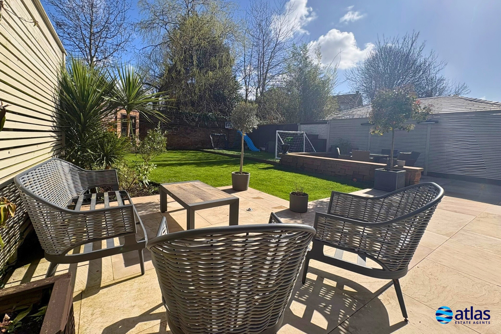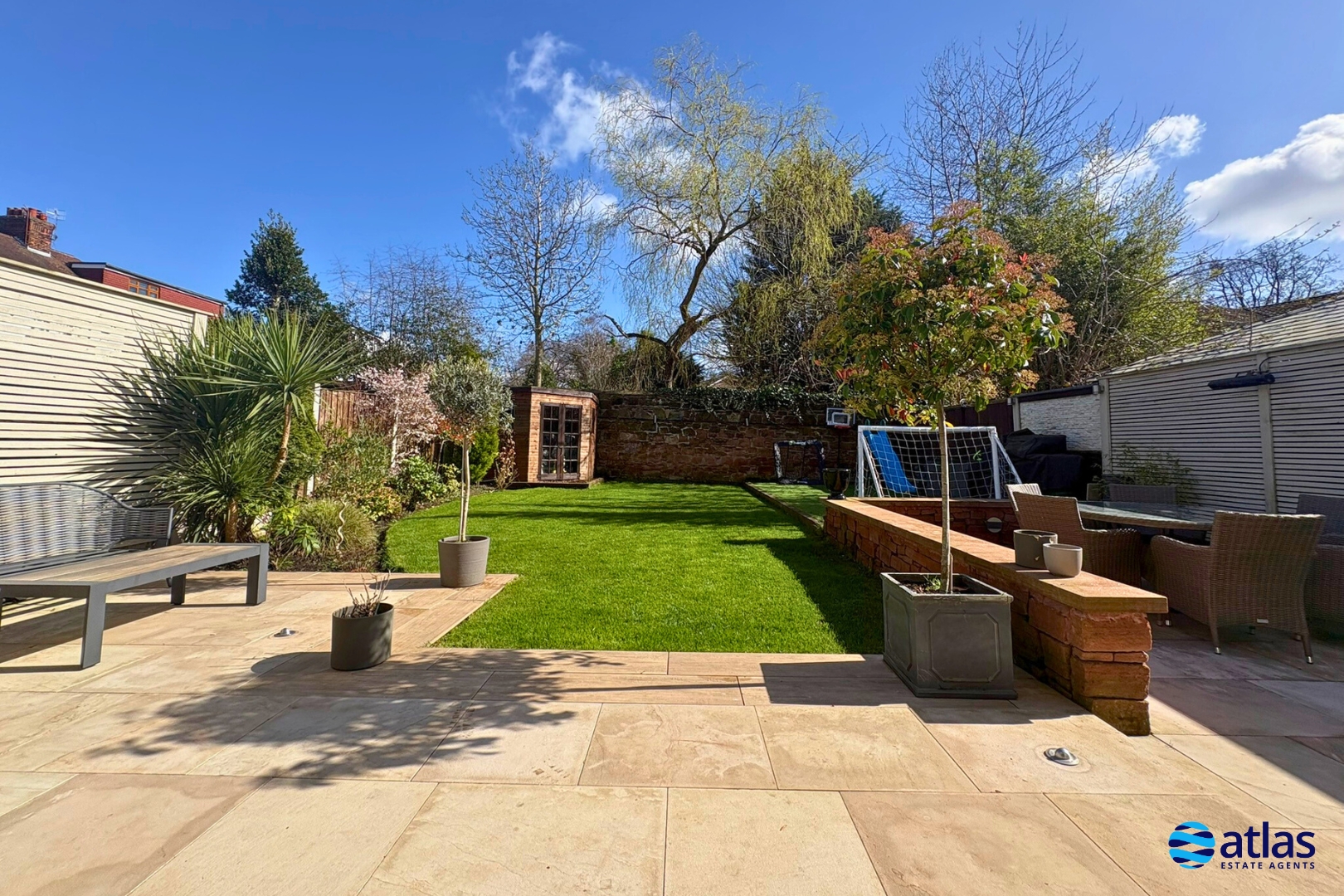 - Expansive Rear Garden with Patio Area and Characterful Sandstone Wall to Rear
