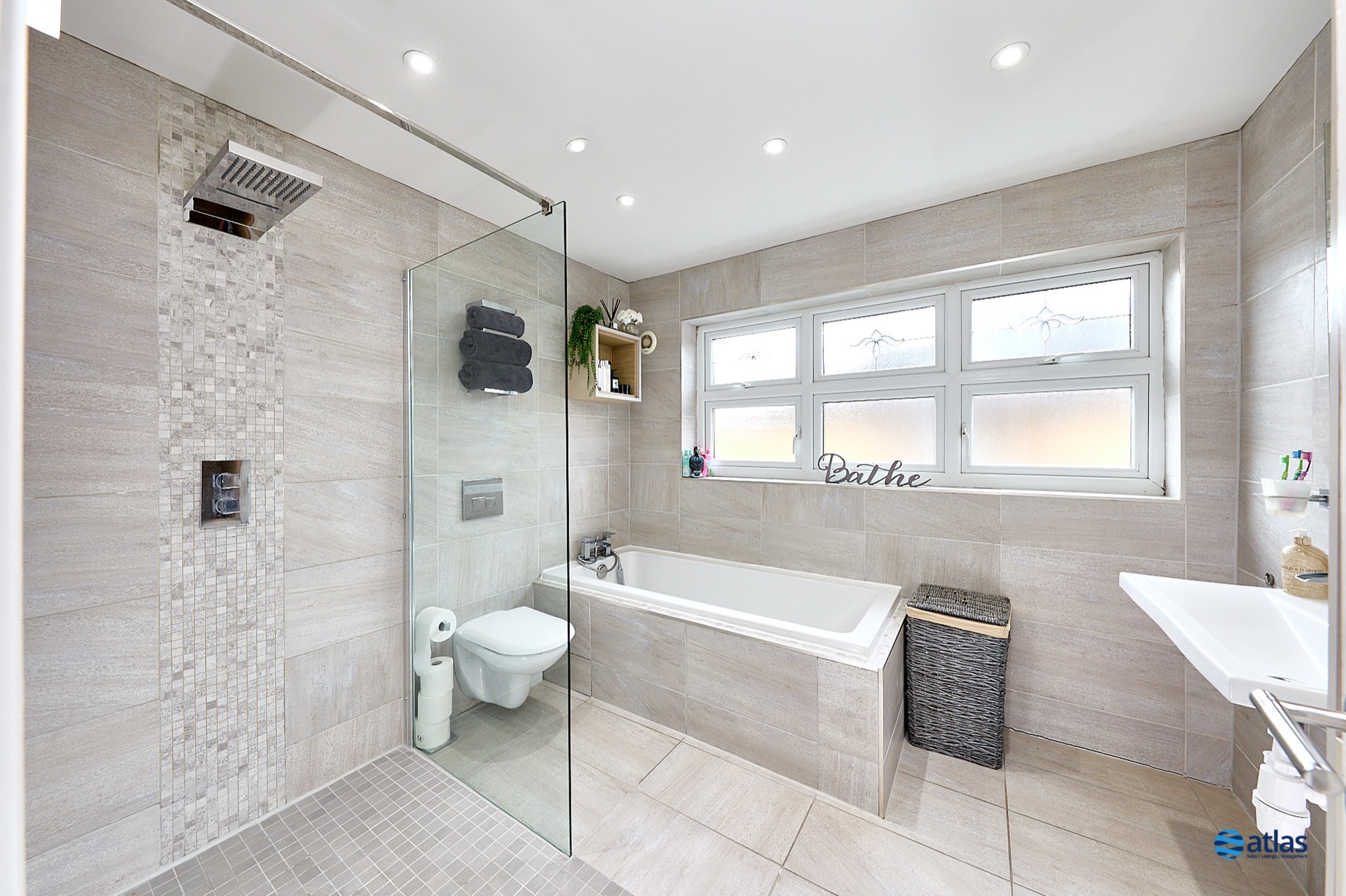 - Contemporary Family Bathroom with Bath and Separate Walk-In Shower