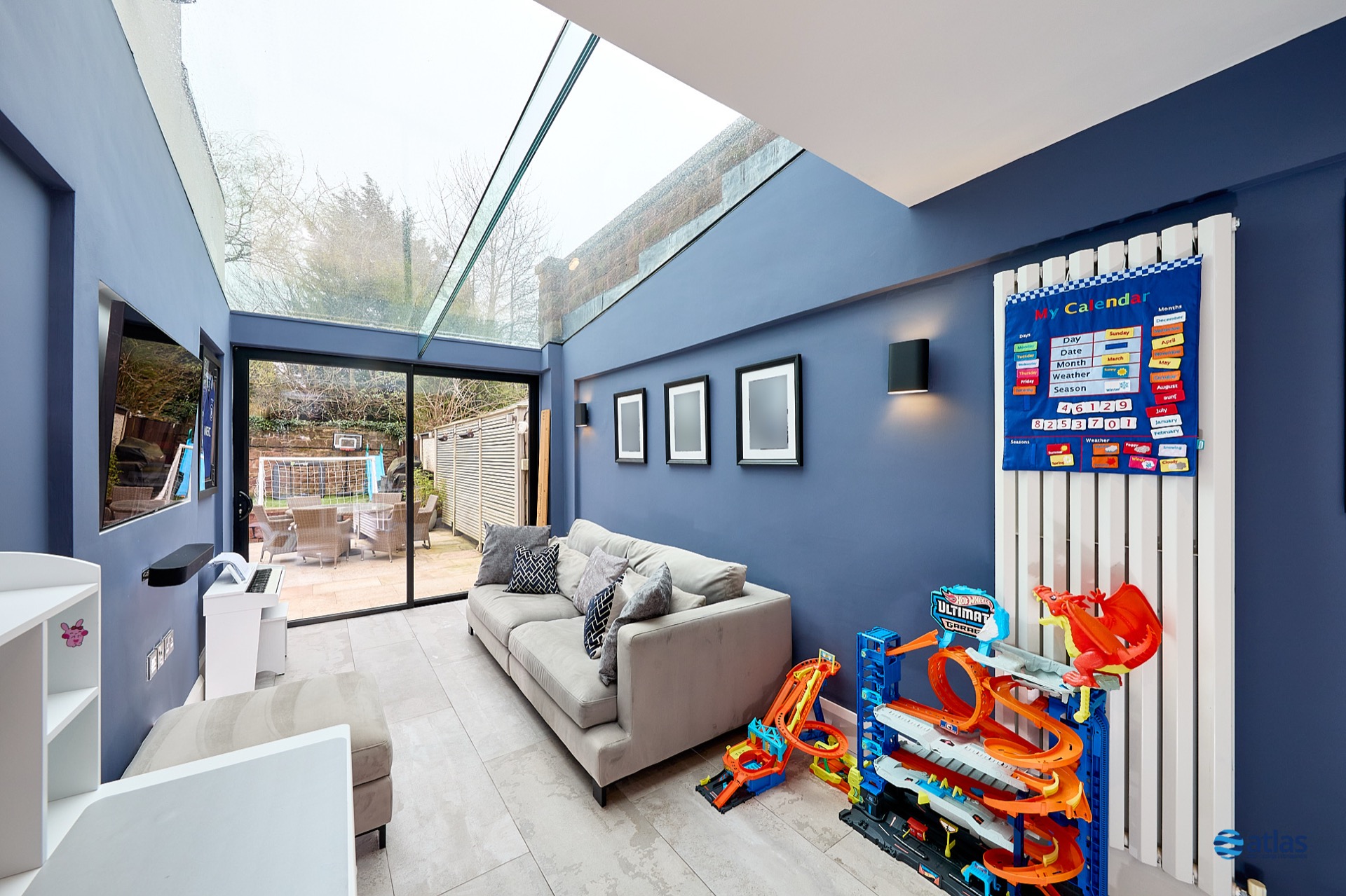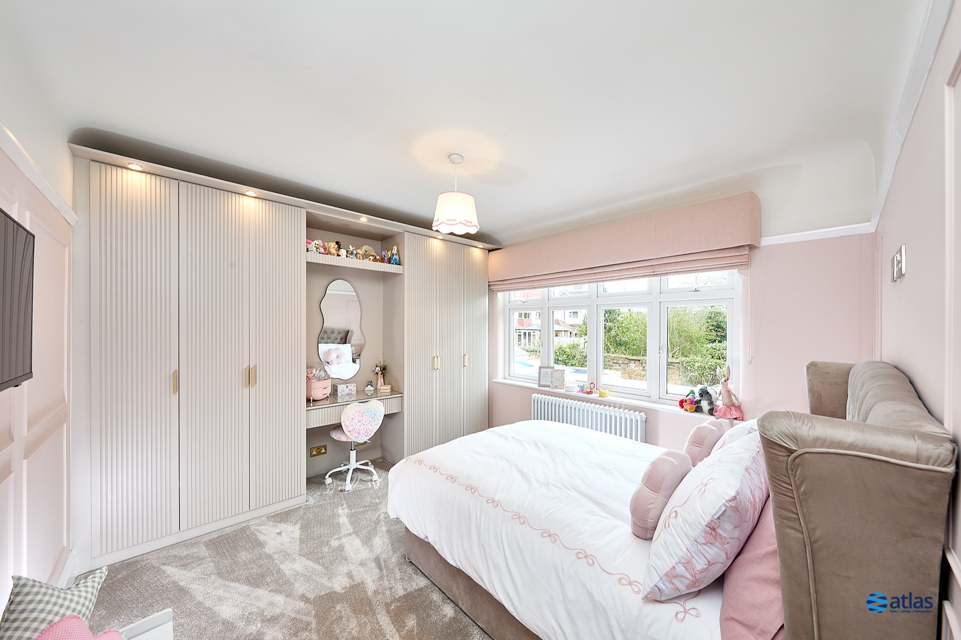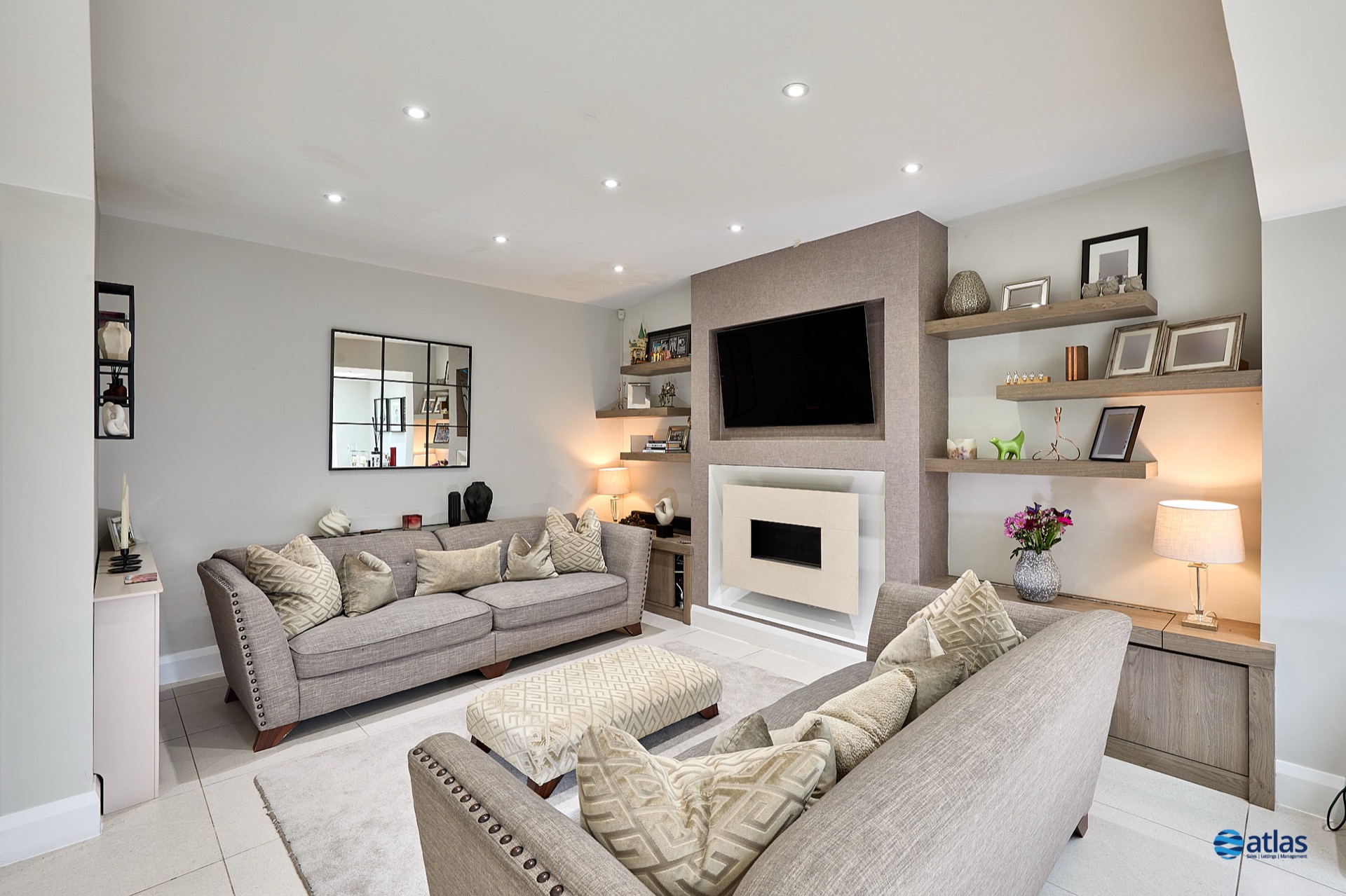 Arranged over two well-proportioned floors, the accommodation blends contemporary style with family-friendly functionality. At its heart, a spacious, open-plan kitchen, dining and living area is complemented by integrated appliances and a striking media wall. Wall-to-wall bi-folding doors open seamlessly onto the rear garden, filling the space with natural light and creating a superb flow for entertaining or relaxed family living.