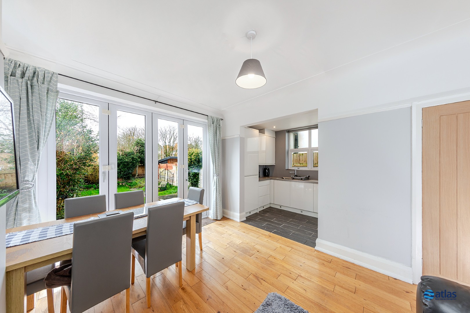 The heart of the home is undoubtedly the open-plan kitchen diner, featuring sleek finishes and bi-folding doors that flood the space with natural light while seamlessly connecting to the generously sized rear garden – ideal for alfresco dining and summer entertaining. The front reception room boasts a delightful bay window and a freestanding wood-burning stove, creating a cosy space for relaxing with family or friends.