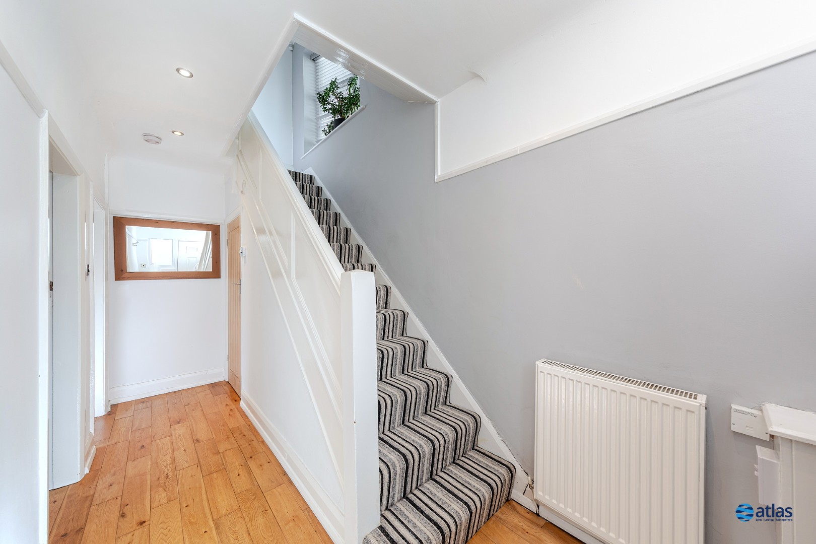Upstairs, there are two comfortable double bedrooms and a versatile single bedroom, suitable as a nursery, home office, or guest room. The contemporary family bathroom is fitted with a bath and a walk-in shower, combining style with practicality.