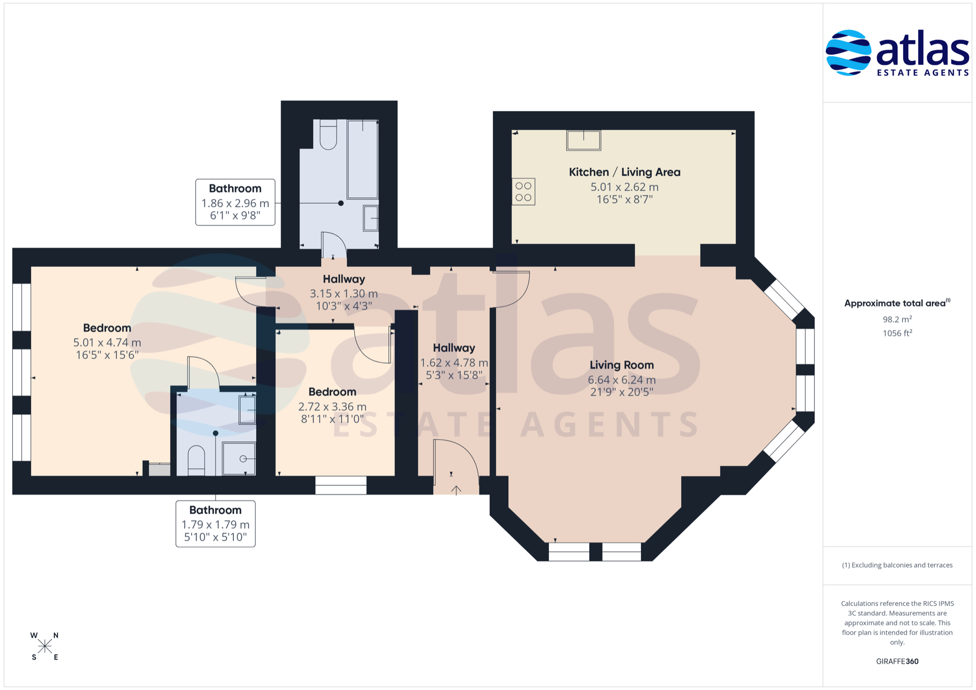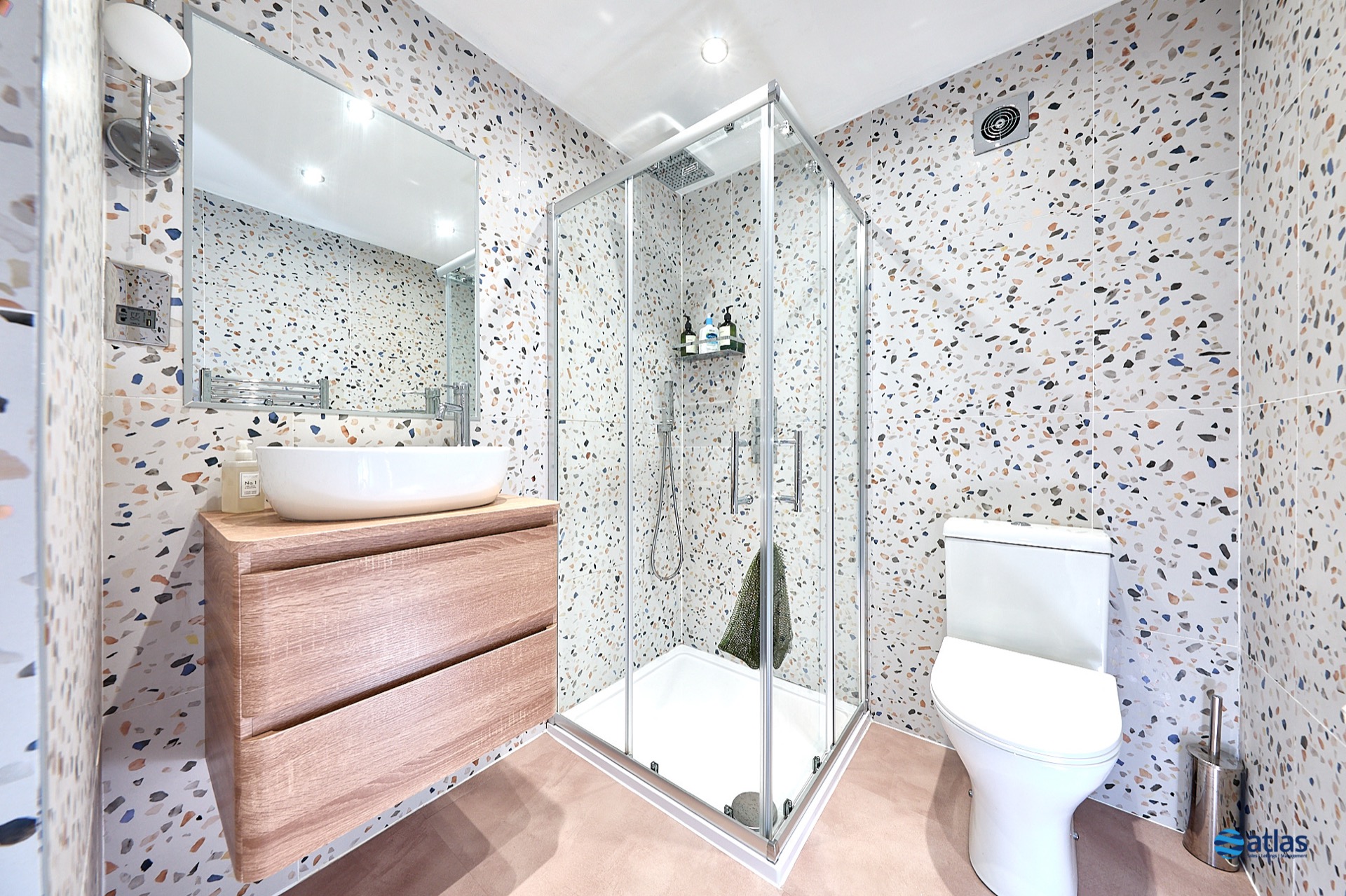 The apartment boasts two well-proportioned bedrooms, both bright and airy, with the principal bedroom benefitting from a stylish en suite. A second contemporary bathroom serves the remainder of the home, offering both convenience and comfort.