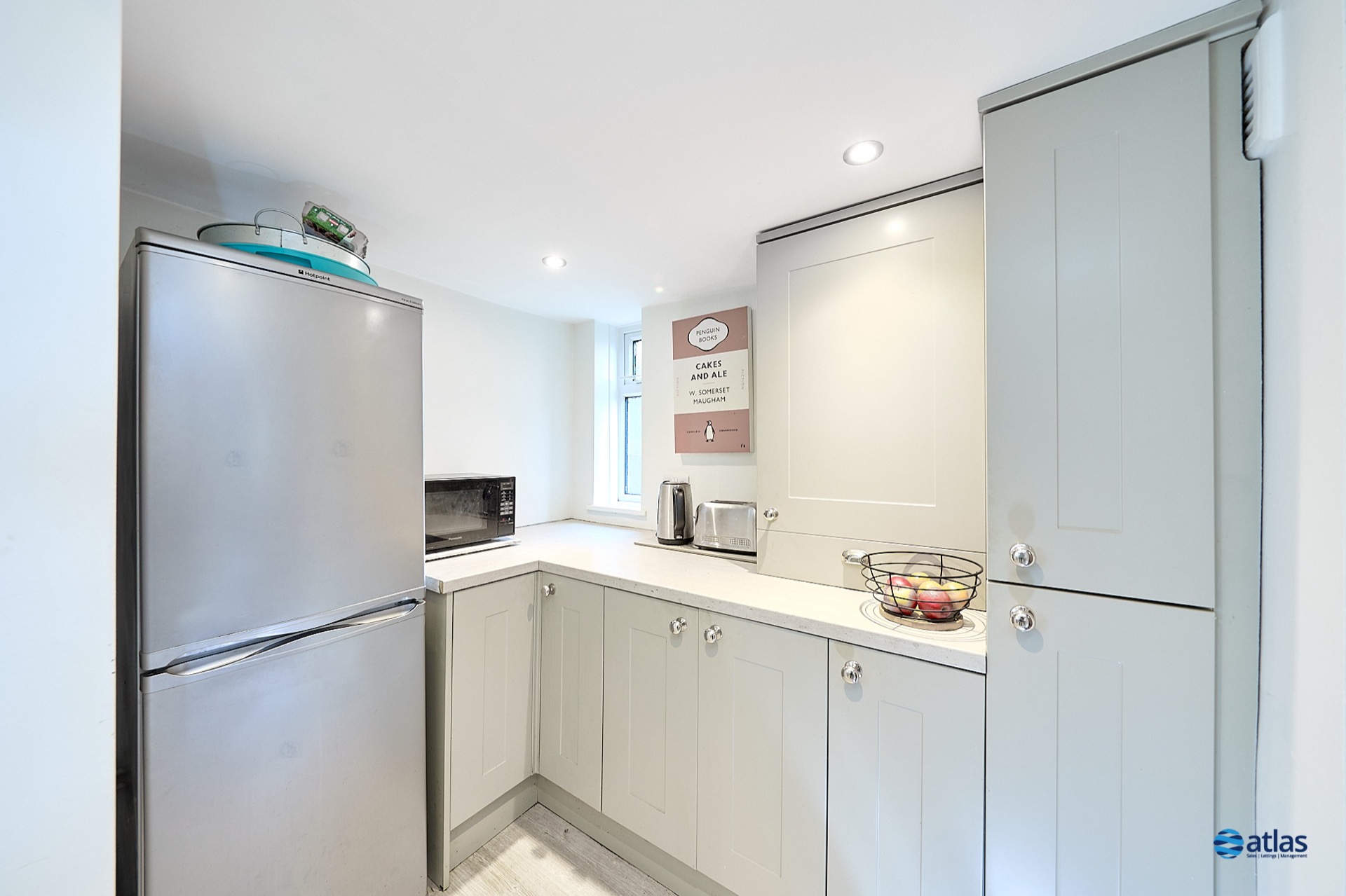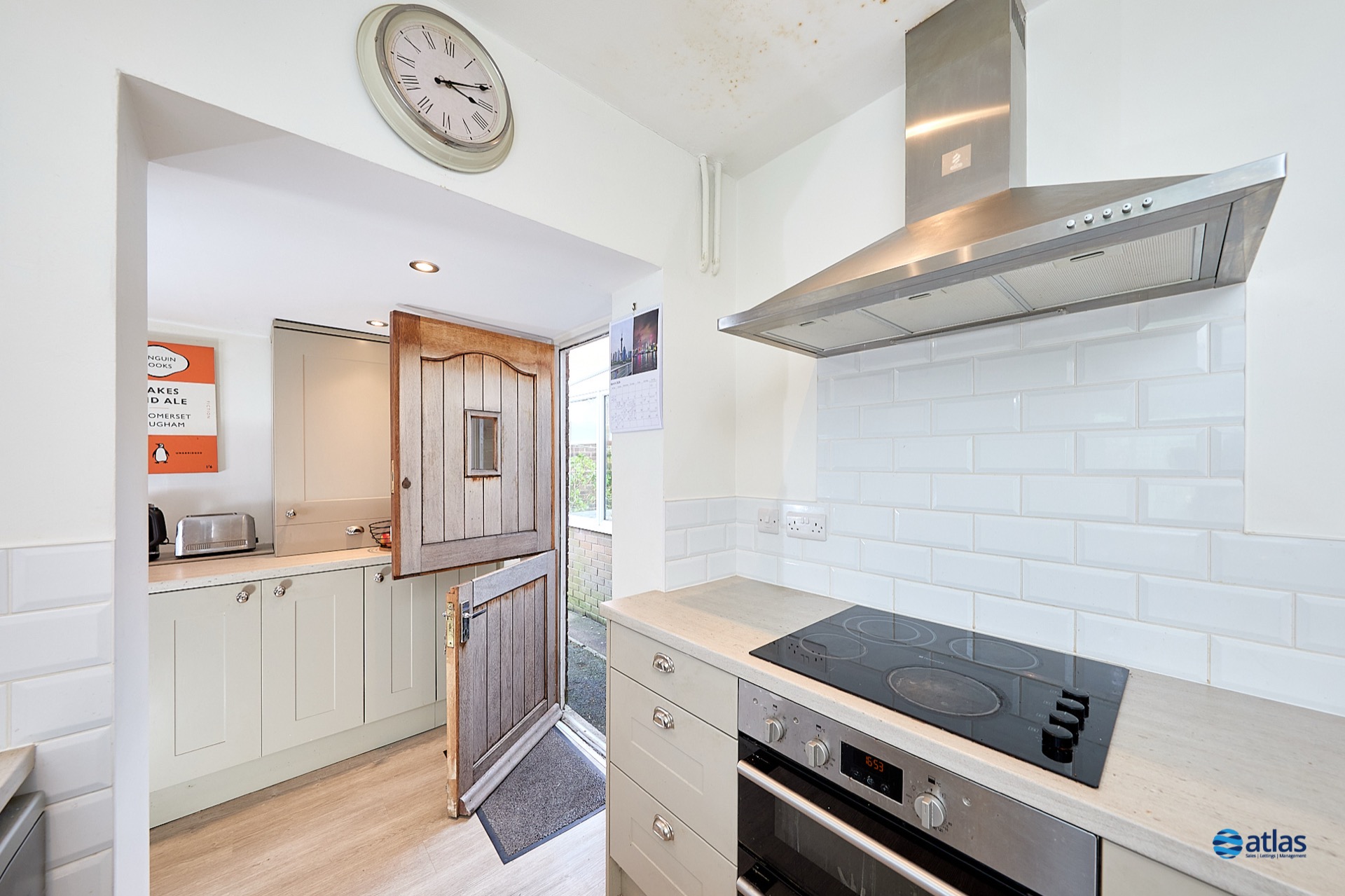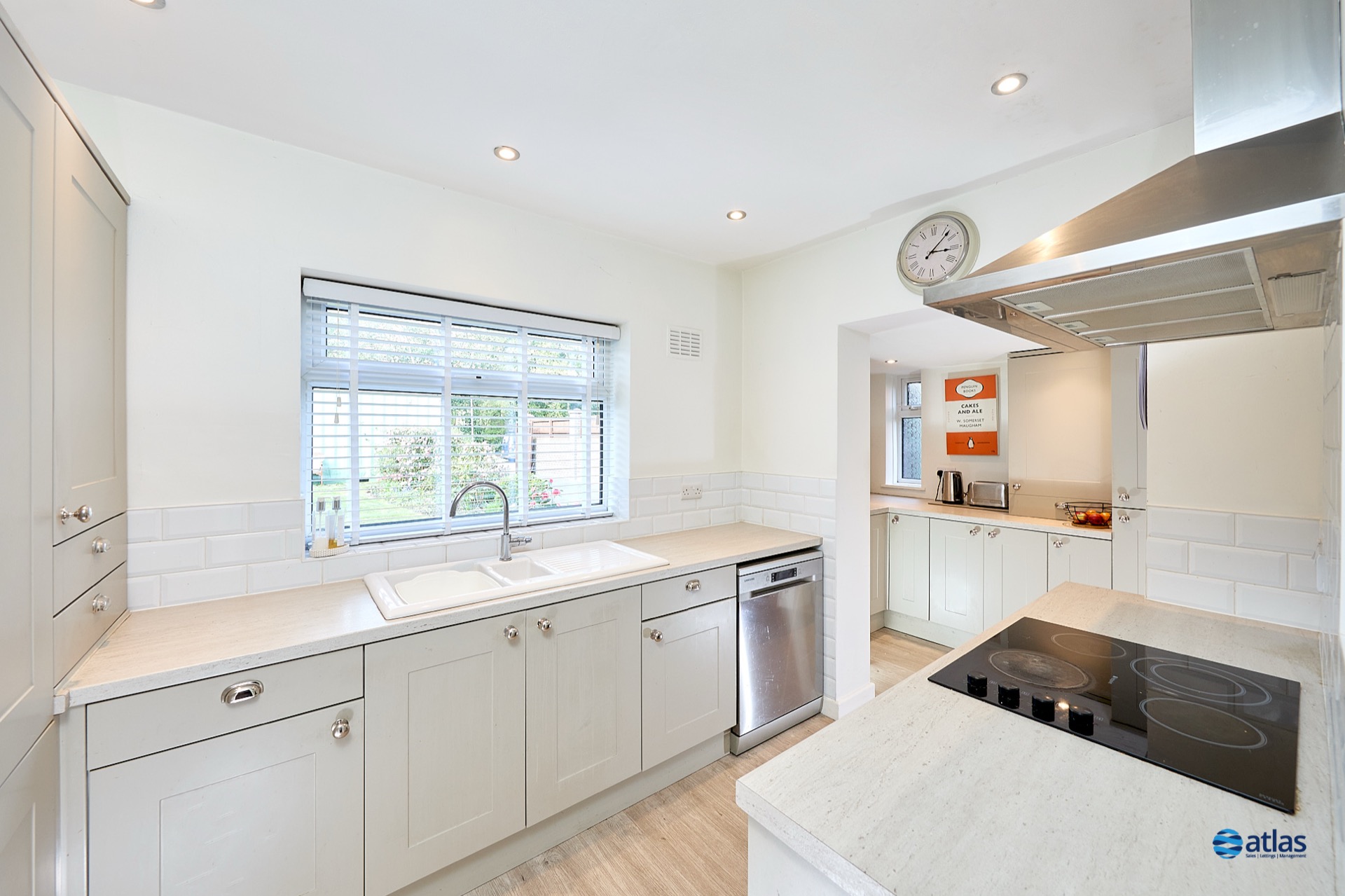- Modern, Well-Lit Kitchen Set Within Its Own Space, with Additional Area Suitable for a Utility
