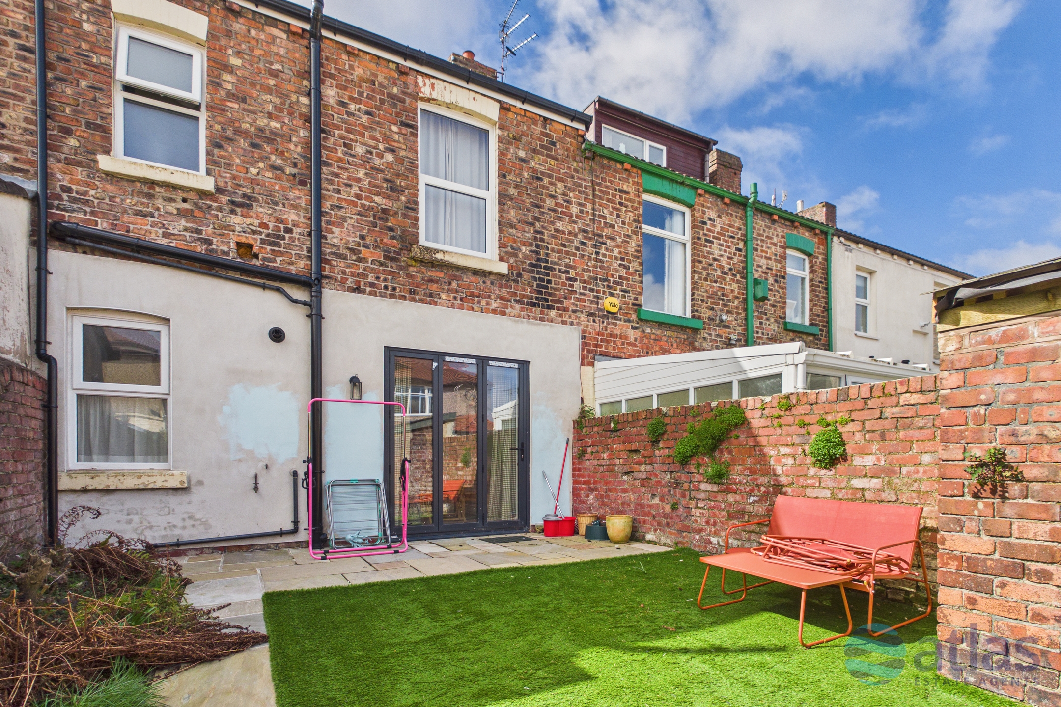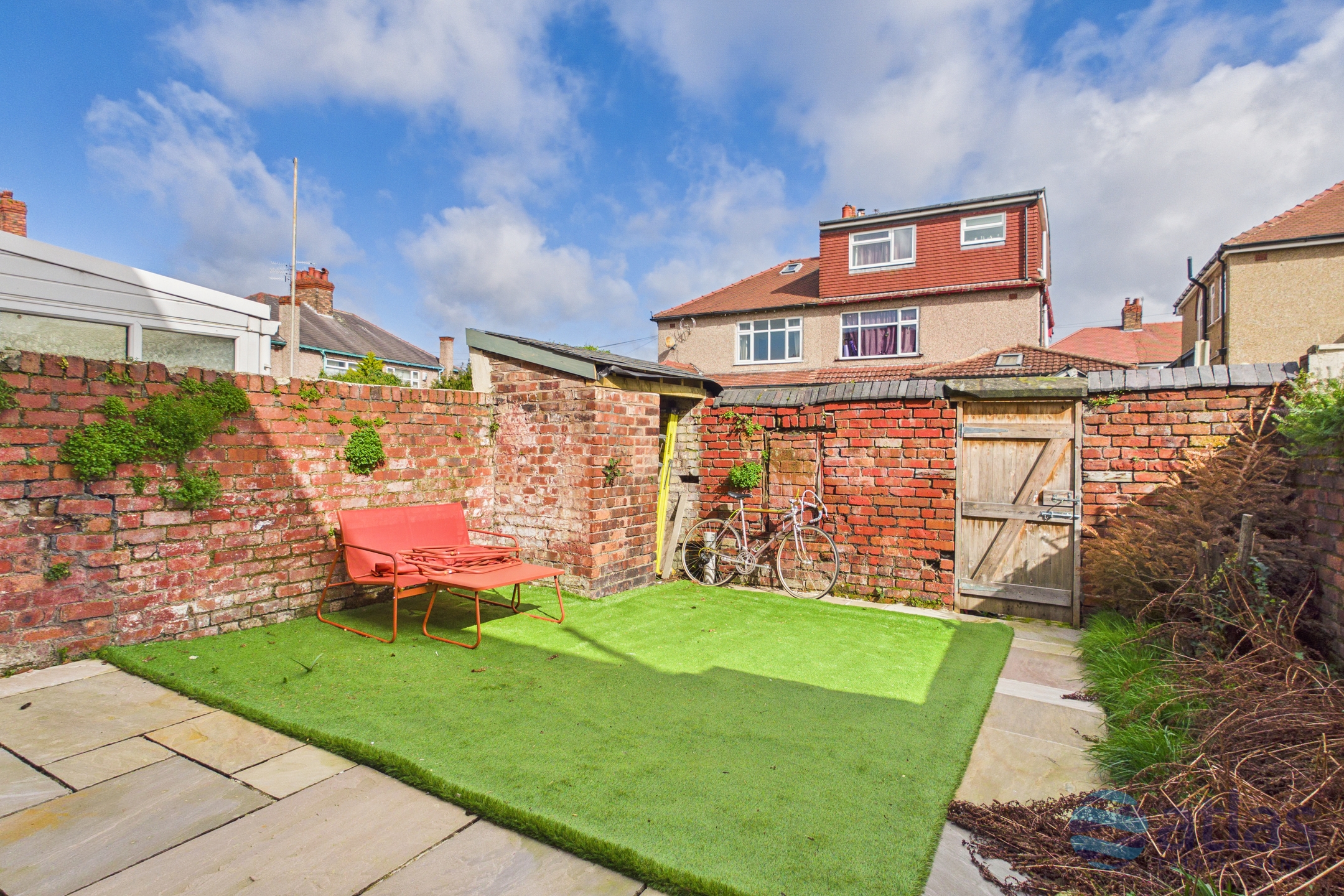 - Large Garden with Low-Maintenance Artificial Lawn and Paved Patio