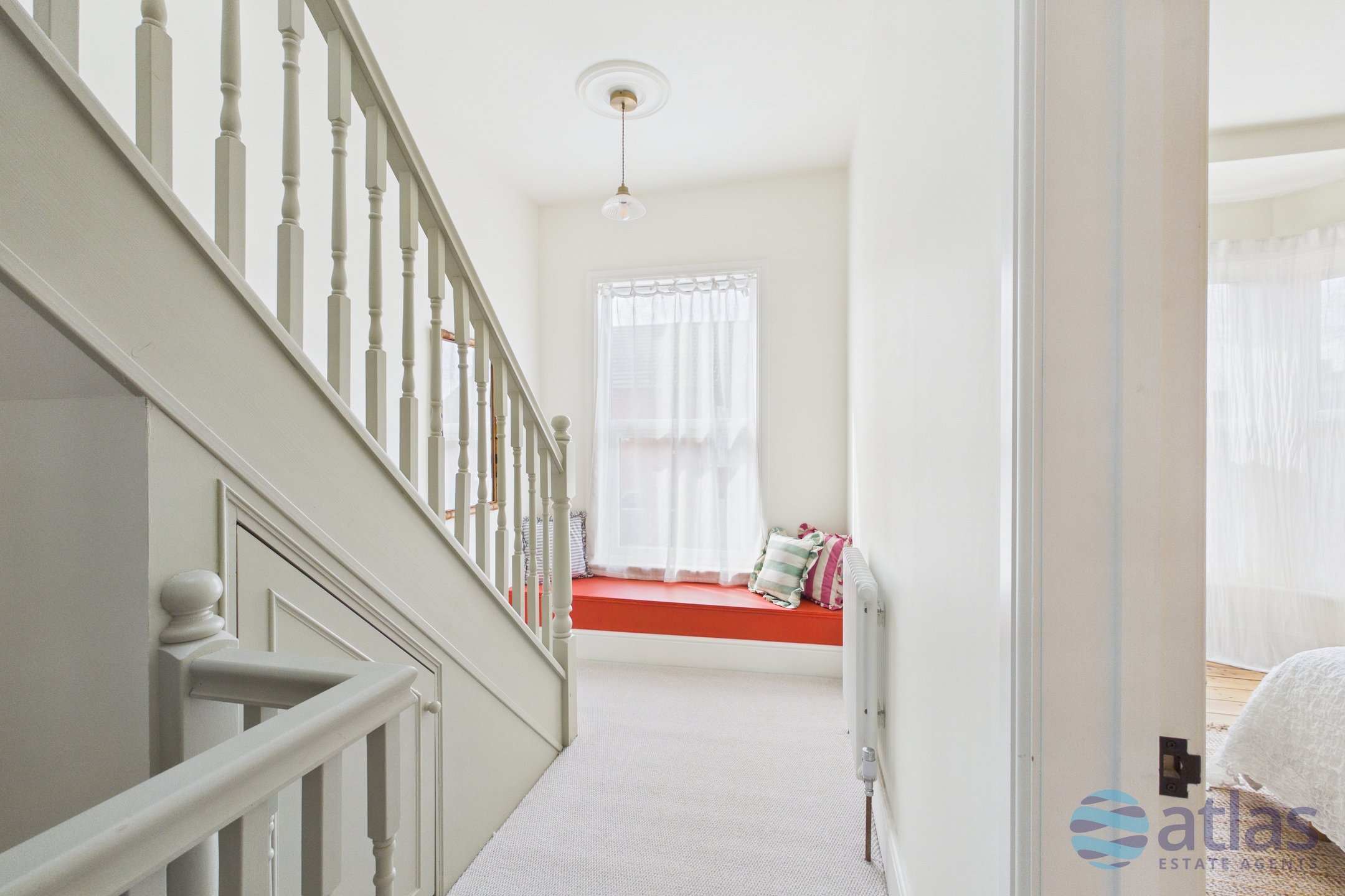 - Generous Landing with a Charming Built-In Reading Nook by the Window