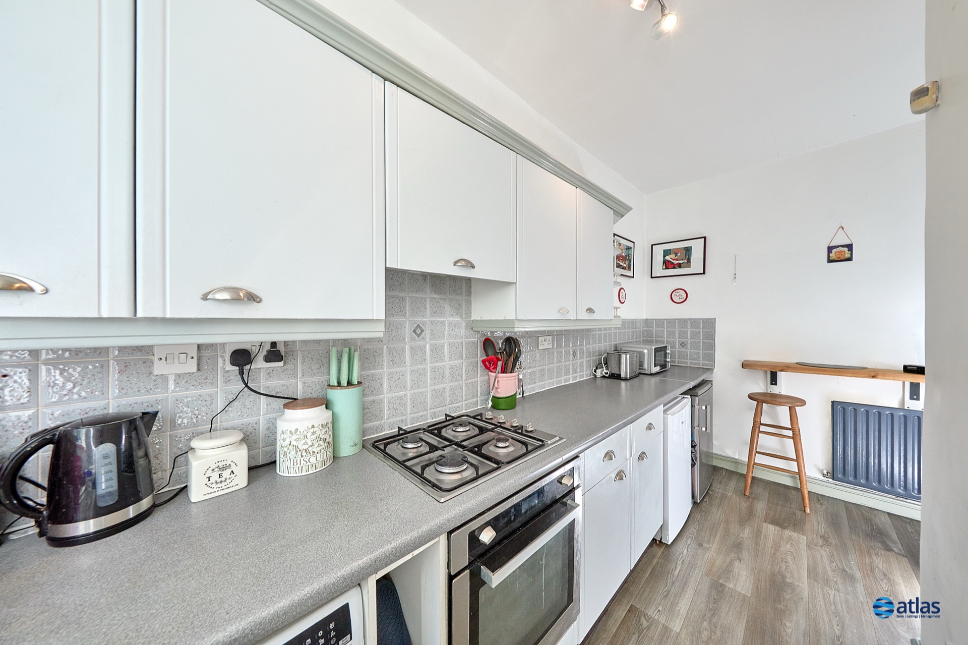 The apartment features a well-proportioned double bedroom, complete with a large window and fitted wardrobes, offering both comfort and practicality. The modern kitchen is bright and well laid out, providing ample space for everyday use, while the contemporary bathroom is finished to a clean and stylish standard.