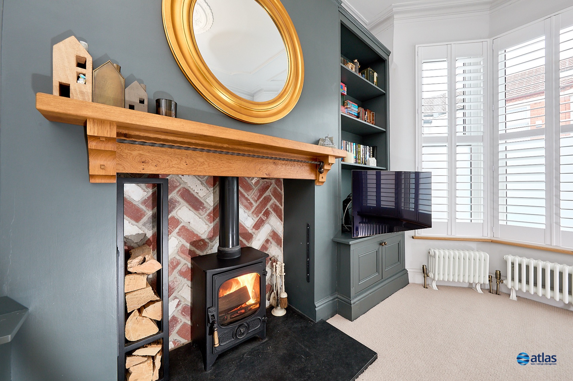 - Bright and Modern Front Living Room with a Bay Window Allowing Plenty of Natural Light, as Well as a Feature Log Burner.