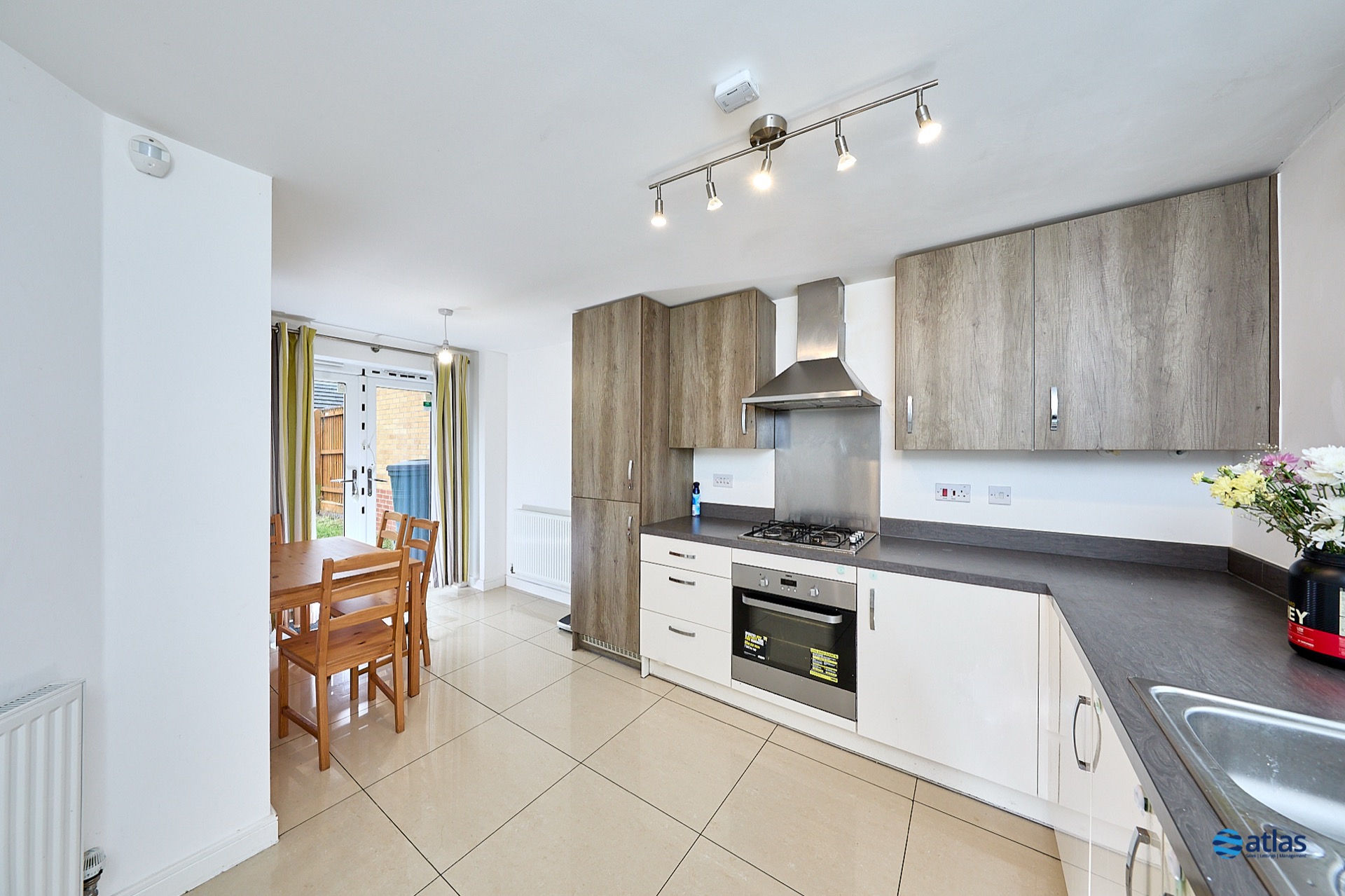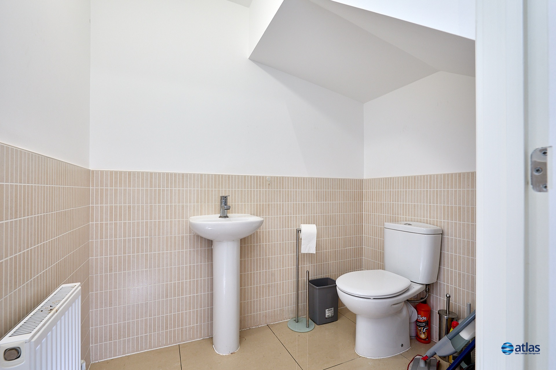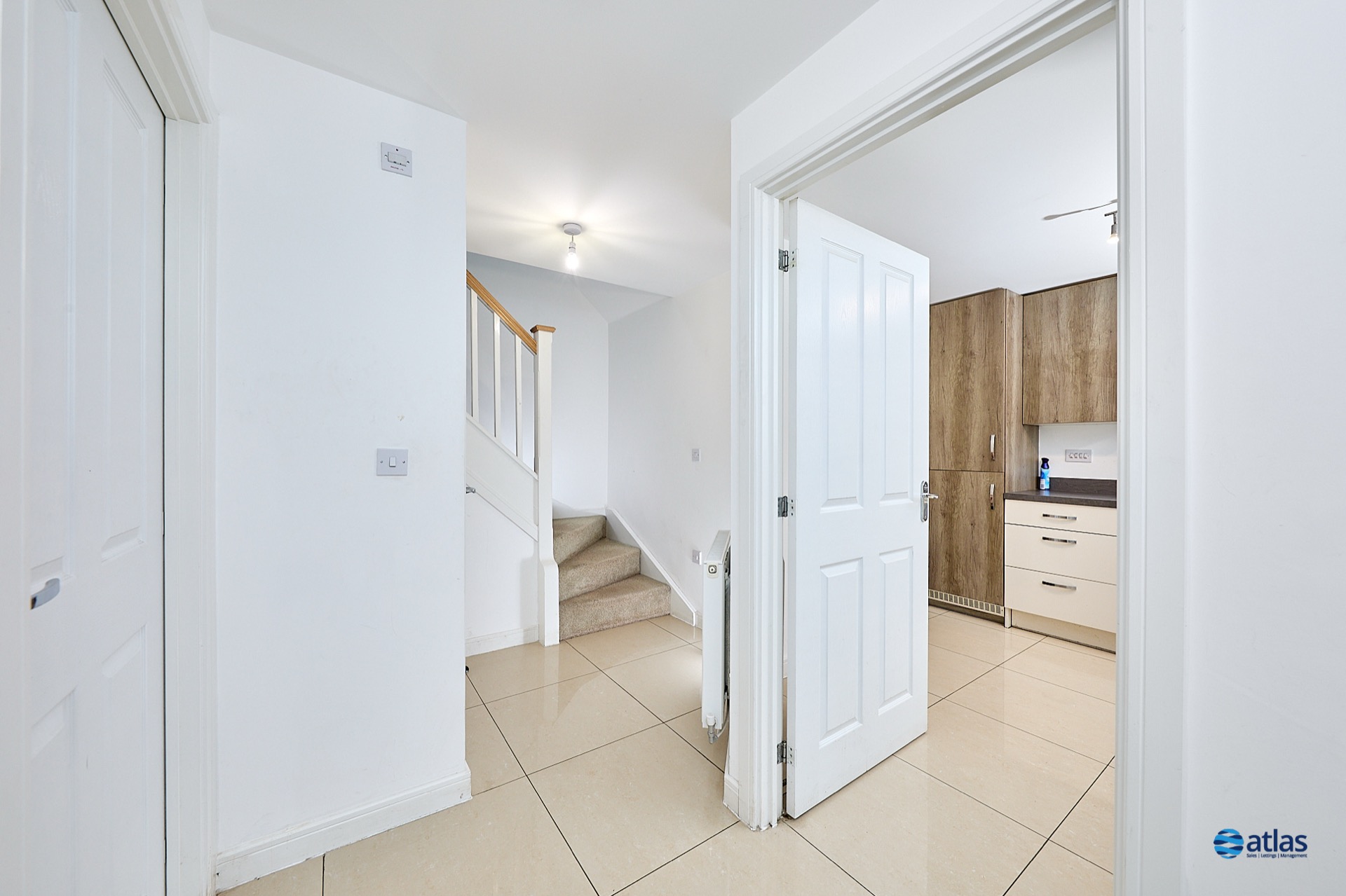 Upon entering, you are welcomed by a large and bright entrance hallway, complete with a conveniently located WC. The ground floor offers a generous reception room with dual-aspect windows to the front and rear, flooding the space with natural light and creating a comfortable and versatile living area. The modern kitchen is well-appointed with integrated appliances and ample dining space, with patio doors leading directly out to the rear garden, ideal for both everyday living and entertaining.
