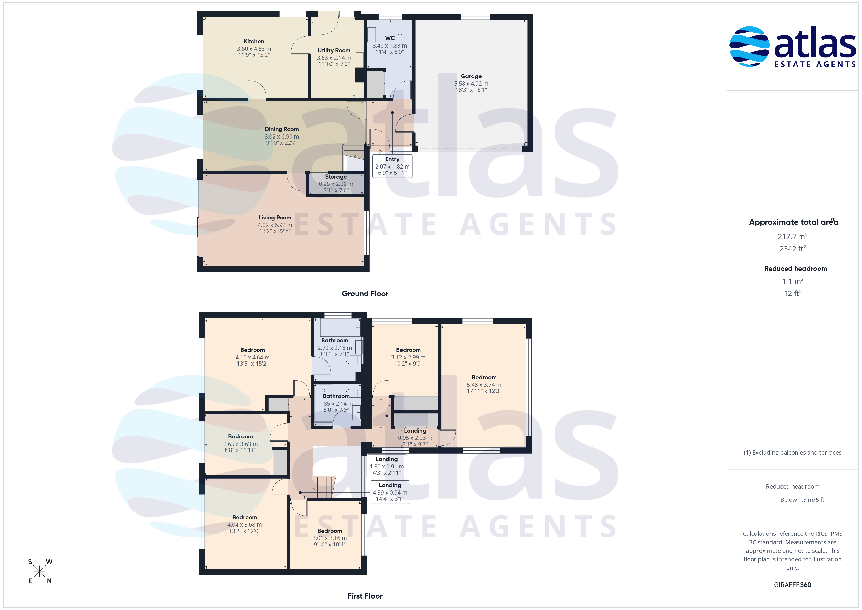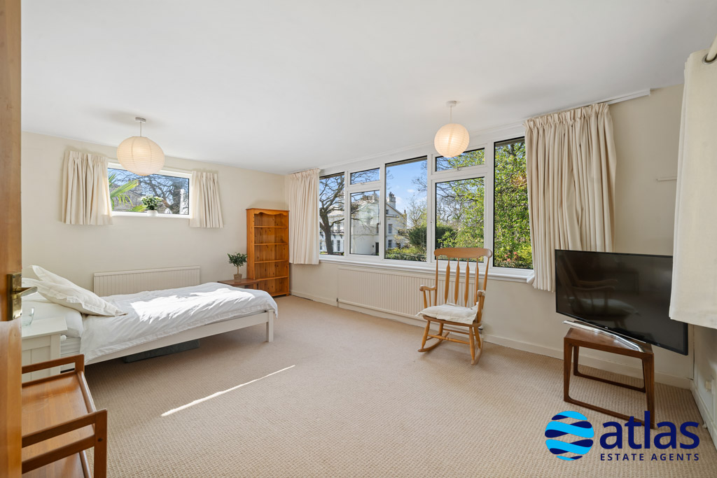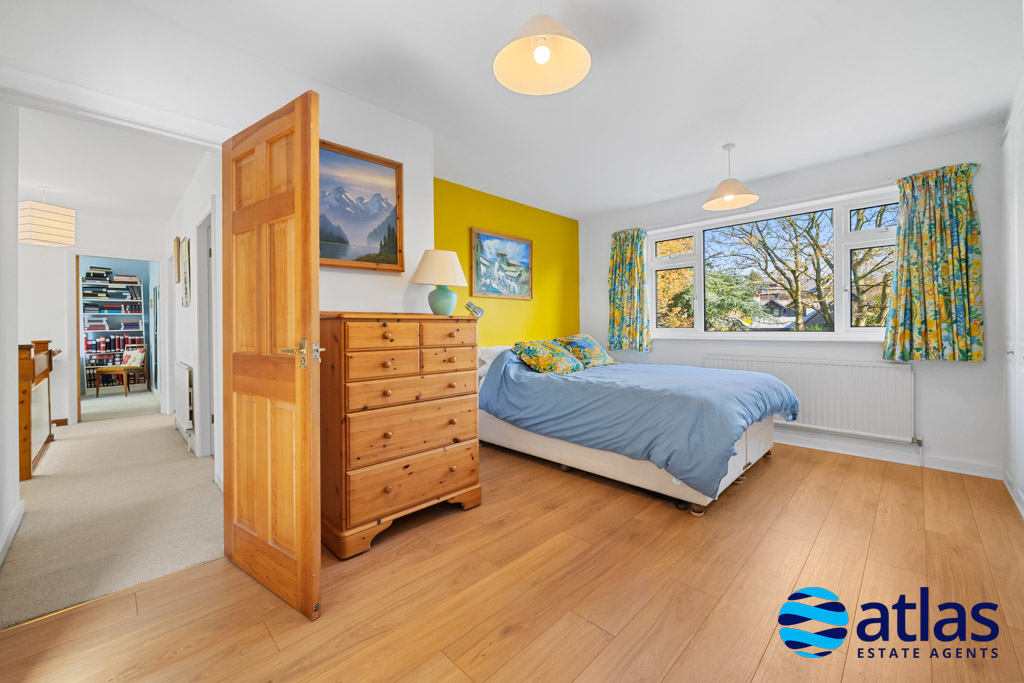 The first floor provides six generously sized bedrooms, including a principal suite with en-suite facilities, alongside a modern family bathroom. A spacious landing with a large window enhances the sense of light throughout.