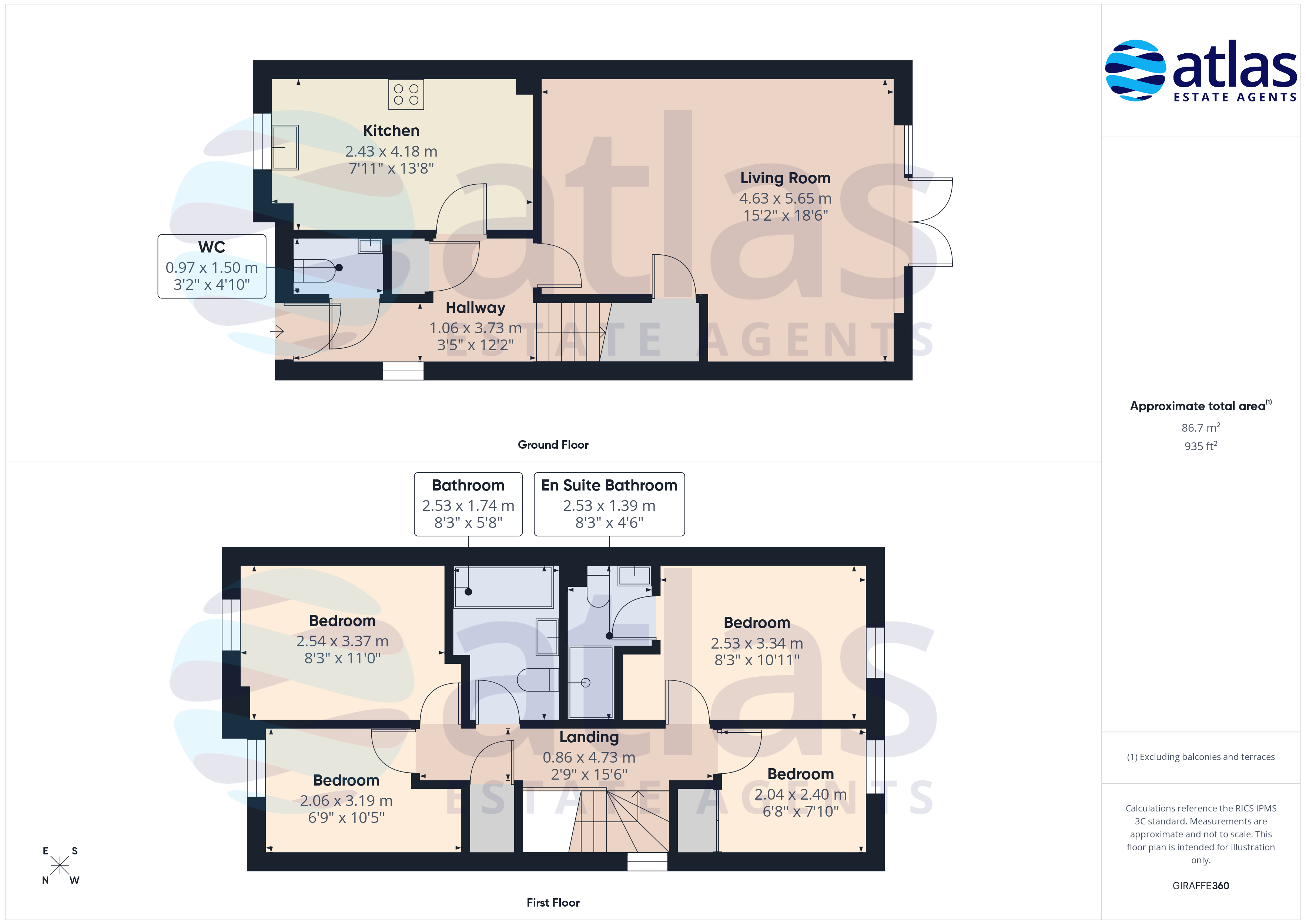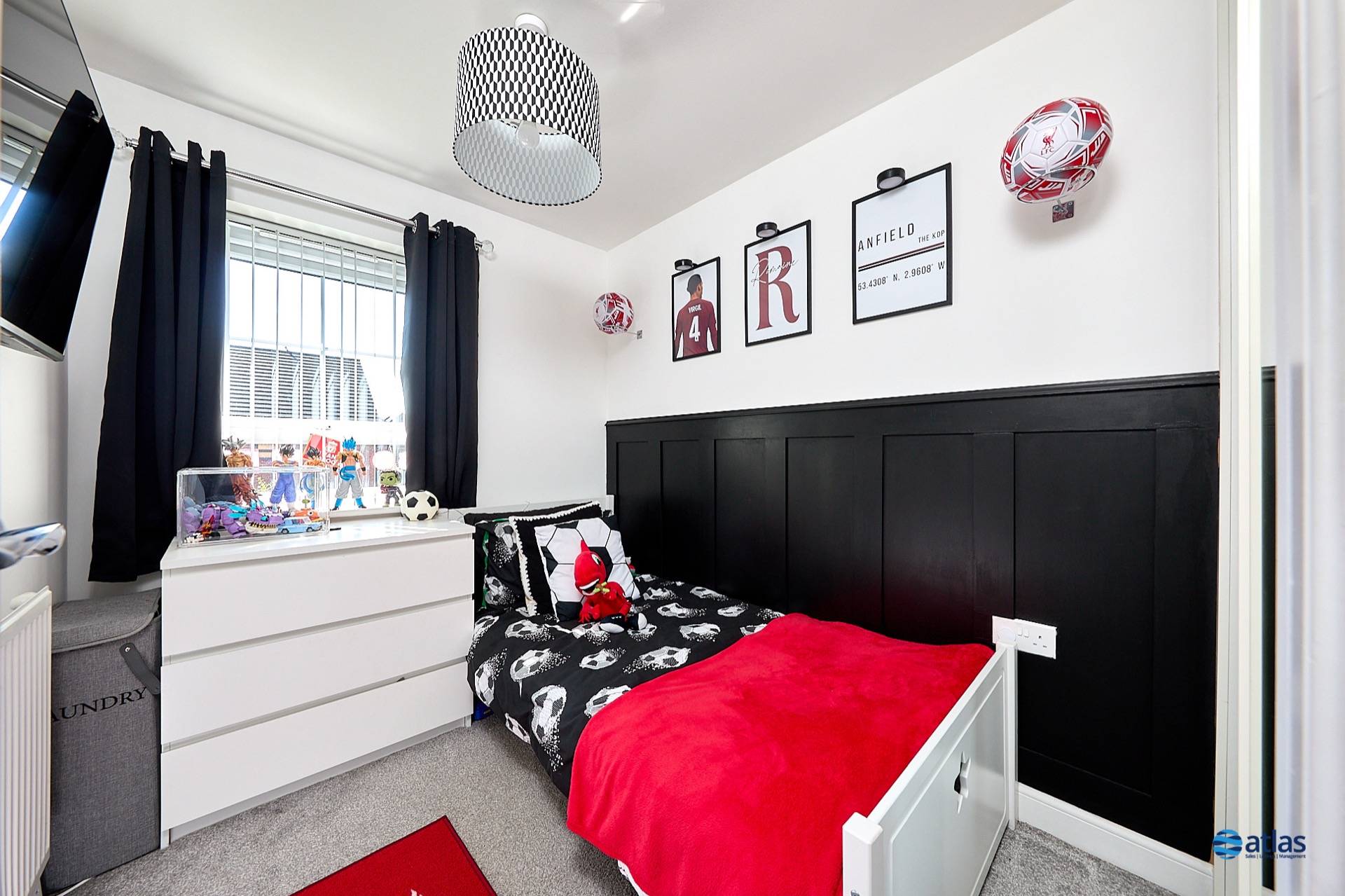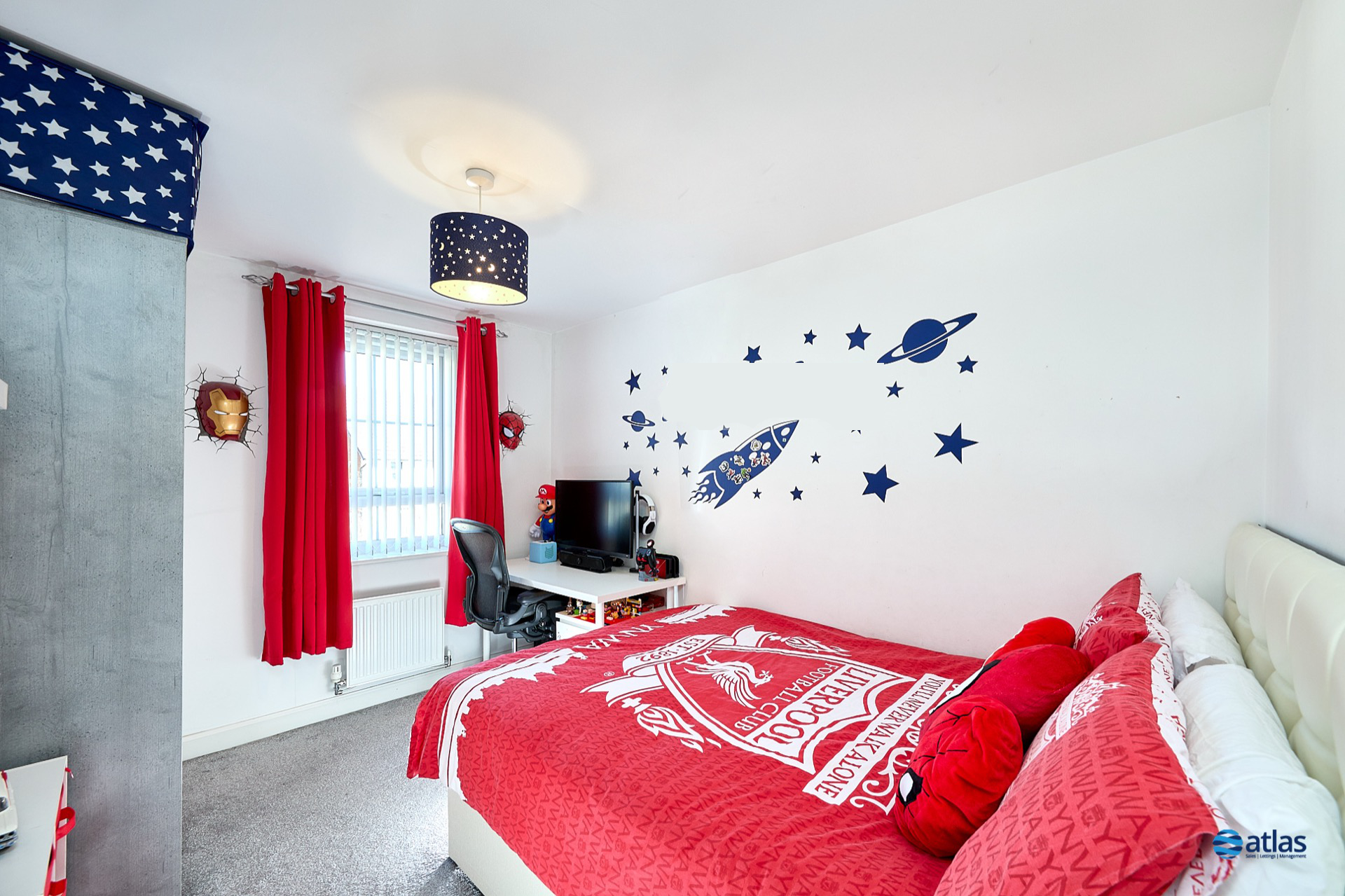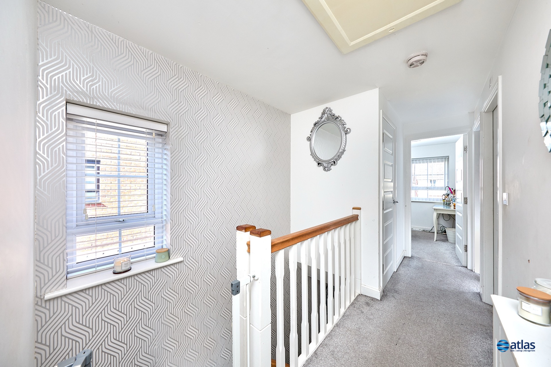 Upstairs, a bright and airy landing leads to four well-proportioned bedrooms, including two generous doubles, a small double, and a comfortable single. The principal bedroom enjoys the added luxury of an en-suite, while a contemporary family bathroom serves the remaining rooms.