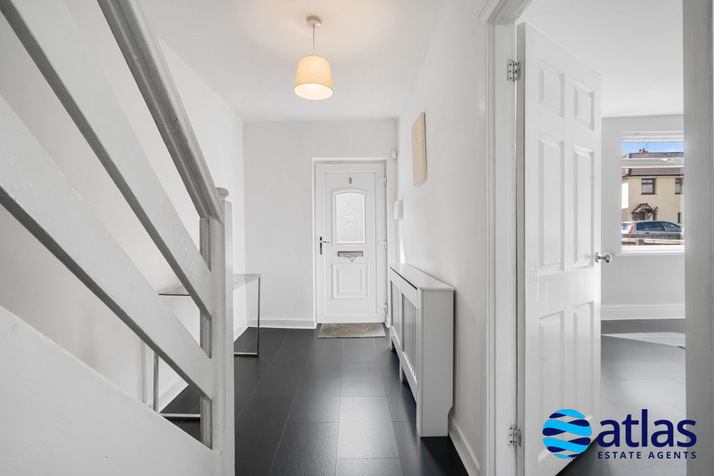 Set back from the road, the property benefits from a generous driveway providing off-road parking for up to two vehicles. Upon entering, you are welcomed by a bright and modern hallway that sets the tone for the rest of the home, leading դեպի a spacious reception room and the kitchen beyond. The living room is a comfortable and inviting space, filled with natural light from a large front window and centred around a charming gas fire.